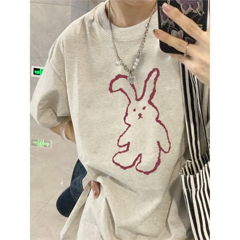 大码纯棉灰色短袖t恤女新款夏季设计感小众美式宽松半袖上衣