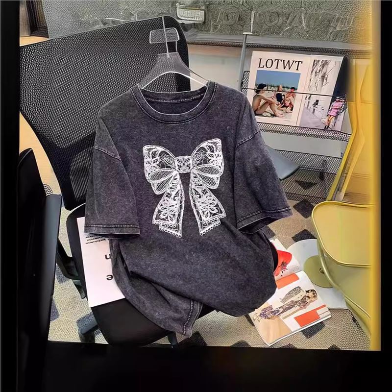 慵懒风休闲宽松圆领短袖T恤夏季新款女装爆款正肩纯棉上衣