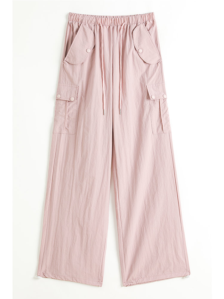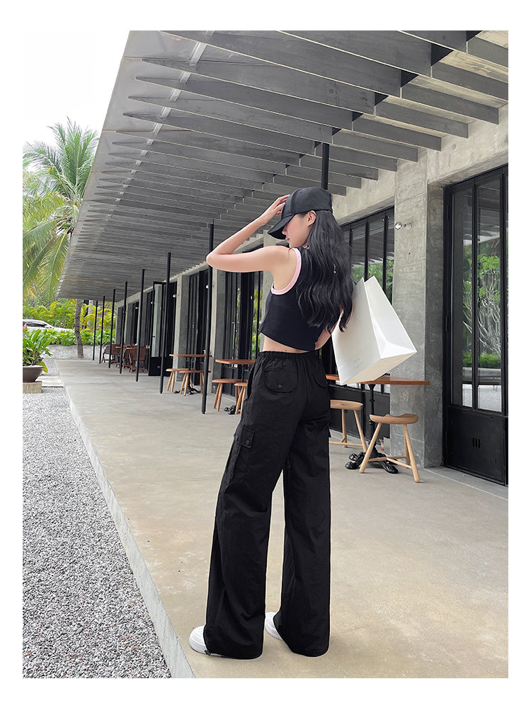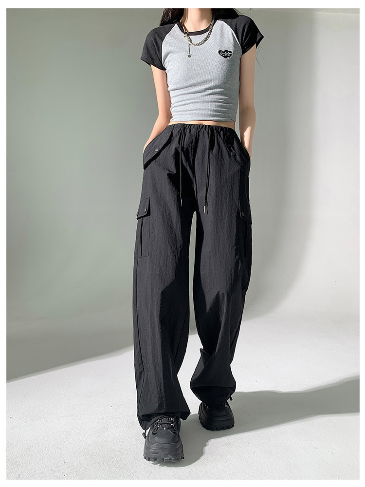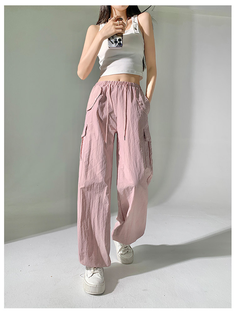 粉色工装裤女新款高腰宽松薄款休闲显瘦束脚速干美式运动裤