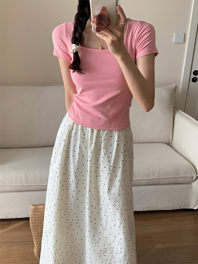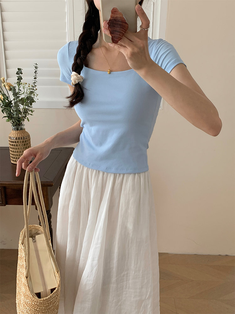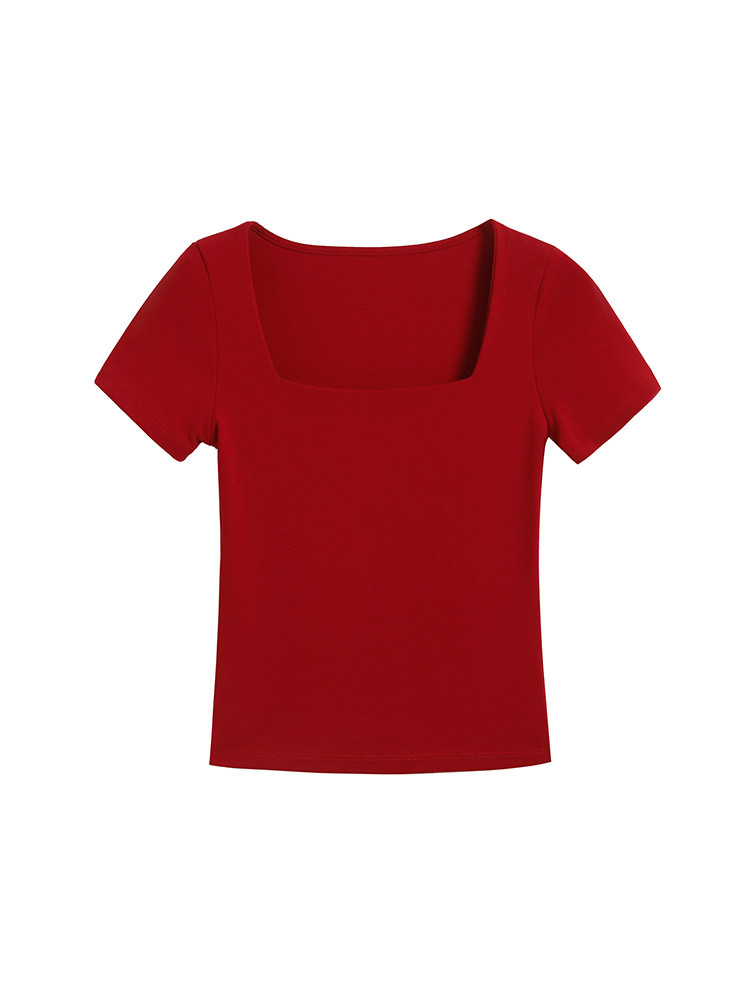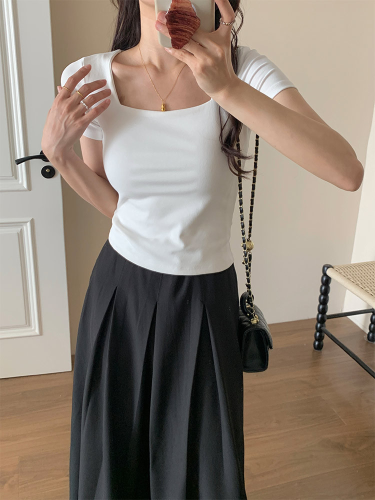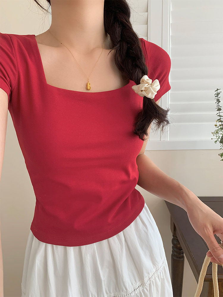 设计感纯欲方领短袖t恤女正肩夏季新款收腰显瘦短款上衣ins潮