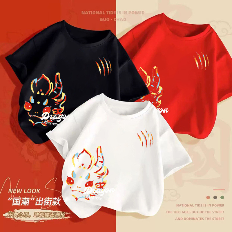 童装男童短袖t恤夏装新款儿童纯棉上衣中大童新年T恤打底衫上衣男