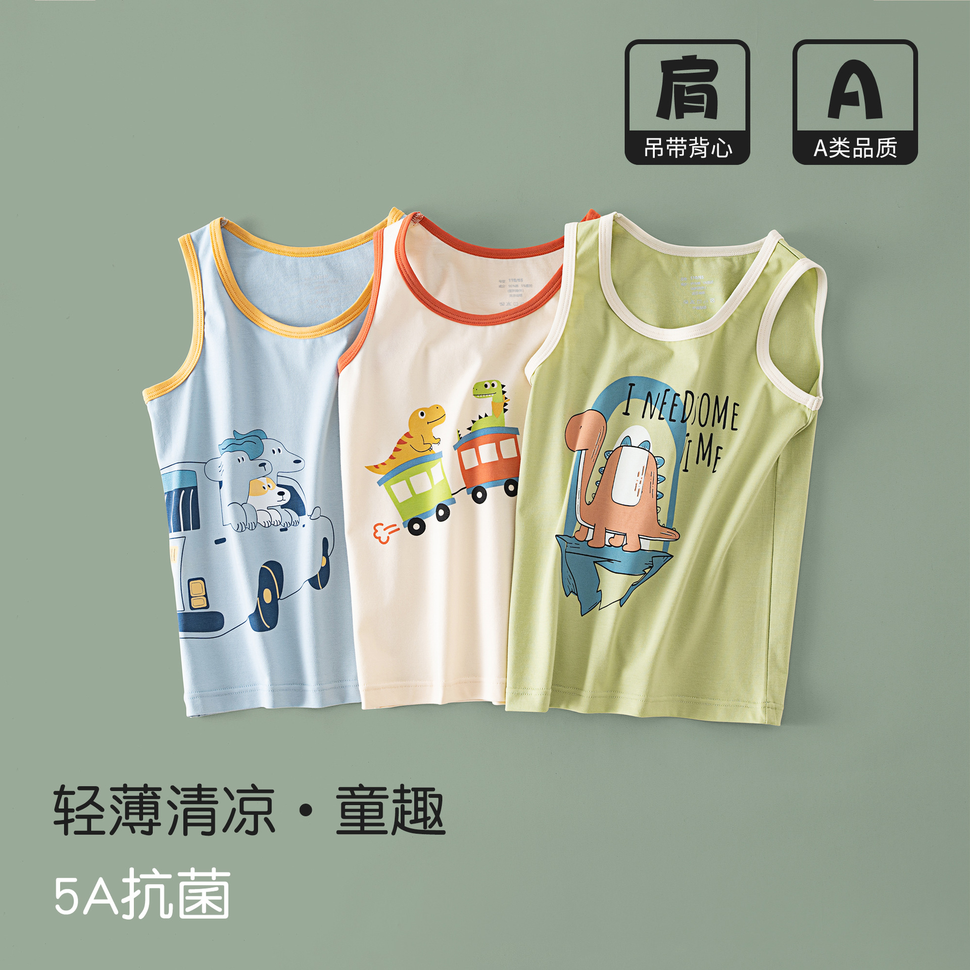 夏季男童无袖上衣薄款纯棉5A抗菌内穿内衣男宝宝外穿护肚儿童背心