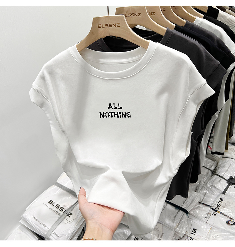 宽松显瘦无袖上衣女体恤夏季新款落肩袖印花t恤女