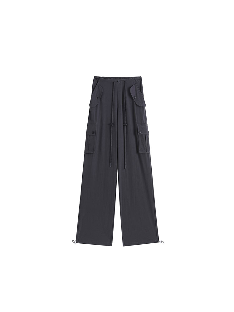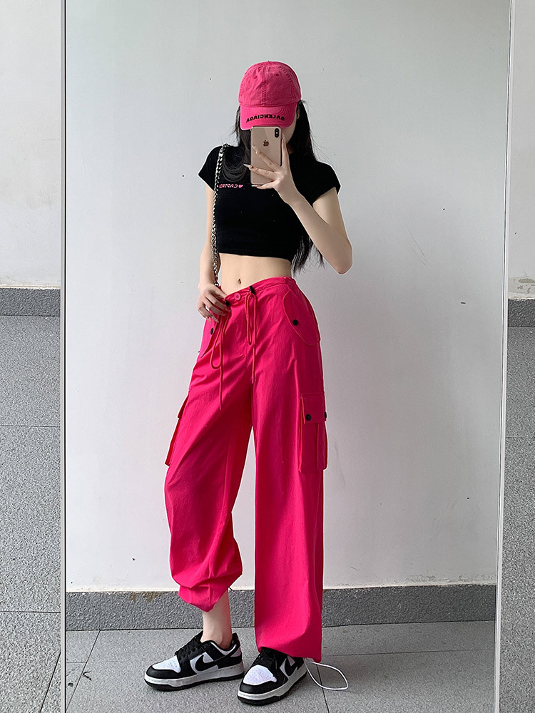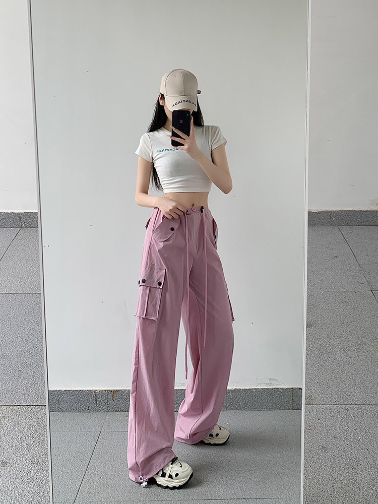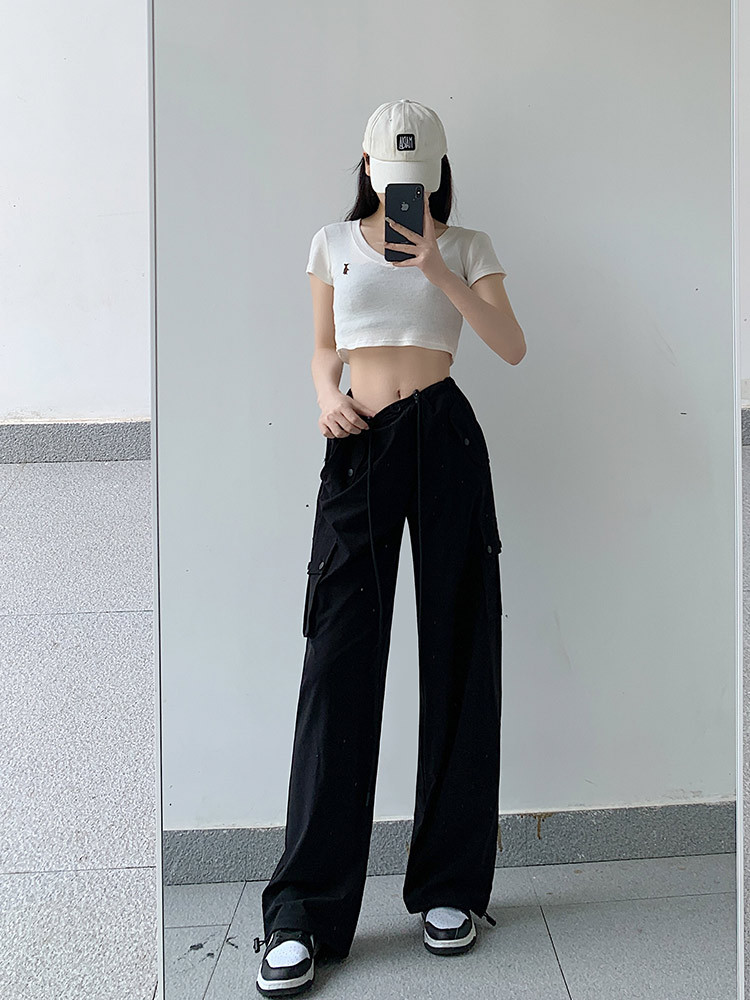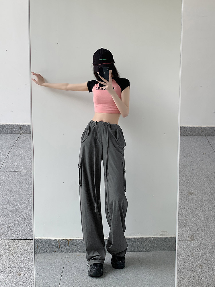 灰色美式工装裤女春夏新款高腰休闲显瘦直筒卫裤小个子运动裤
