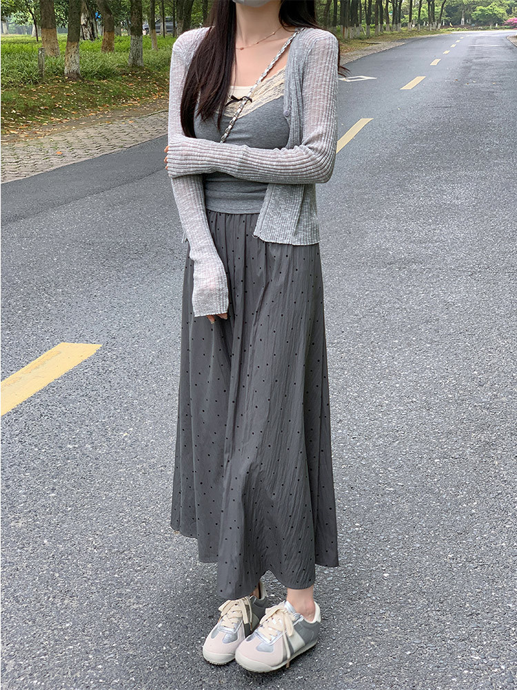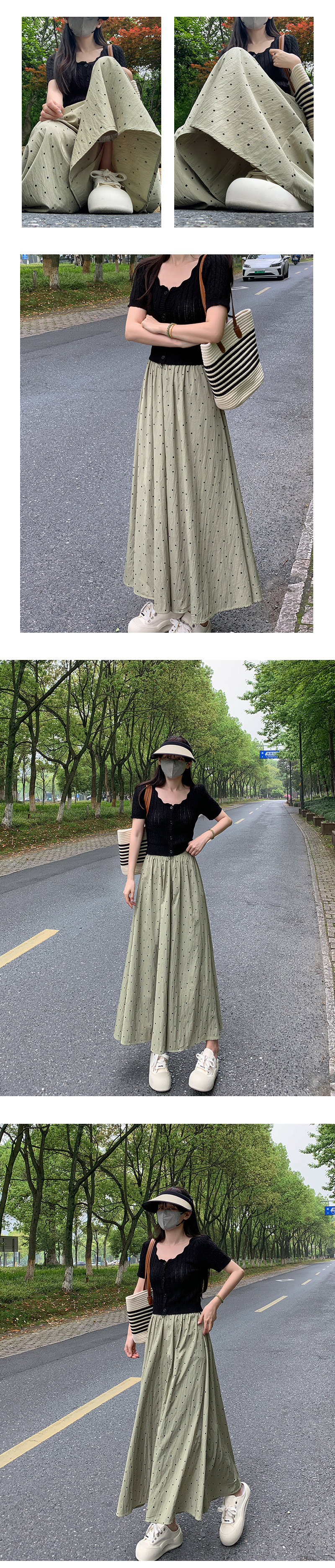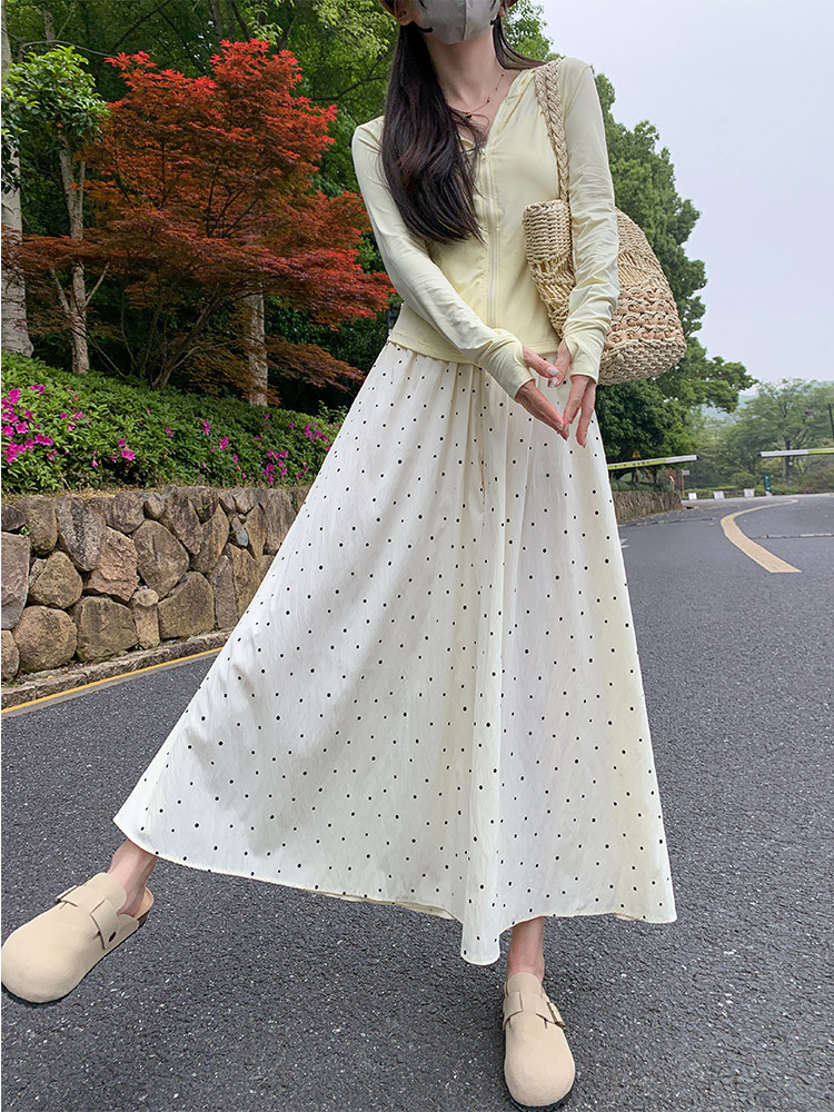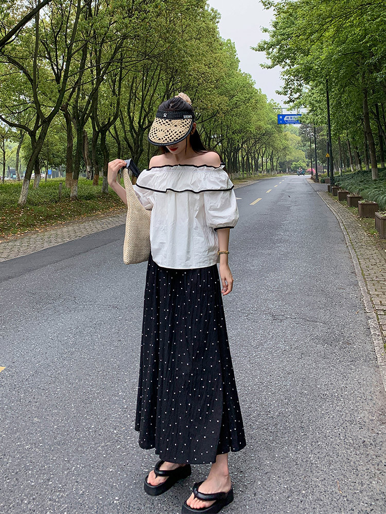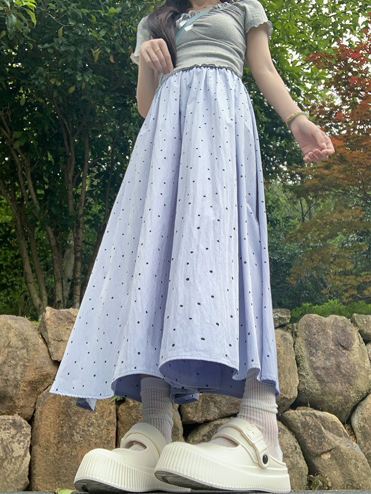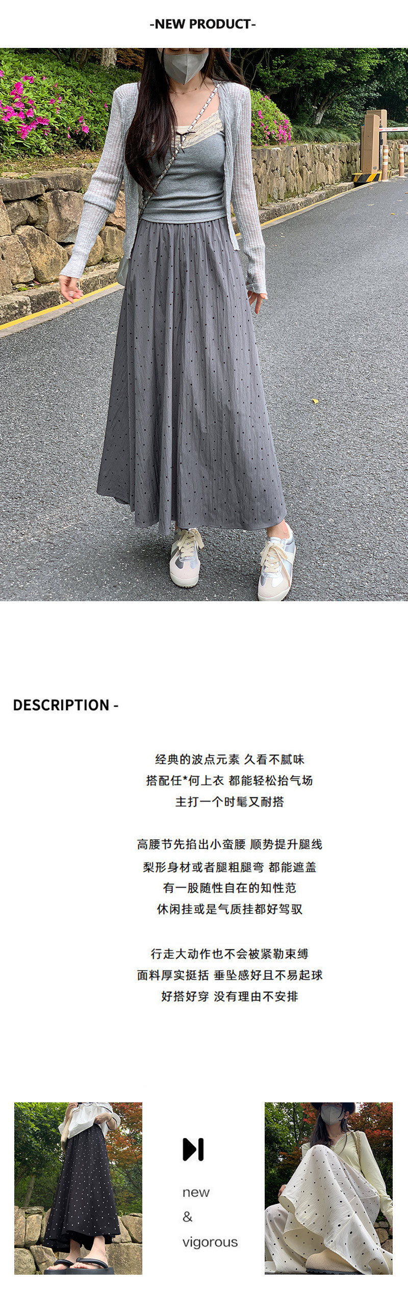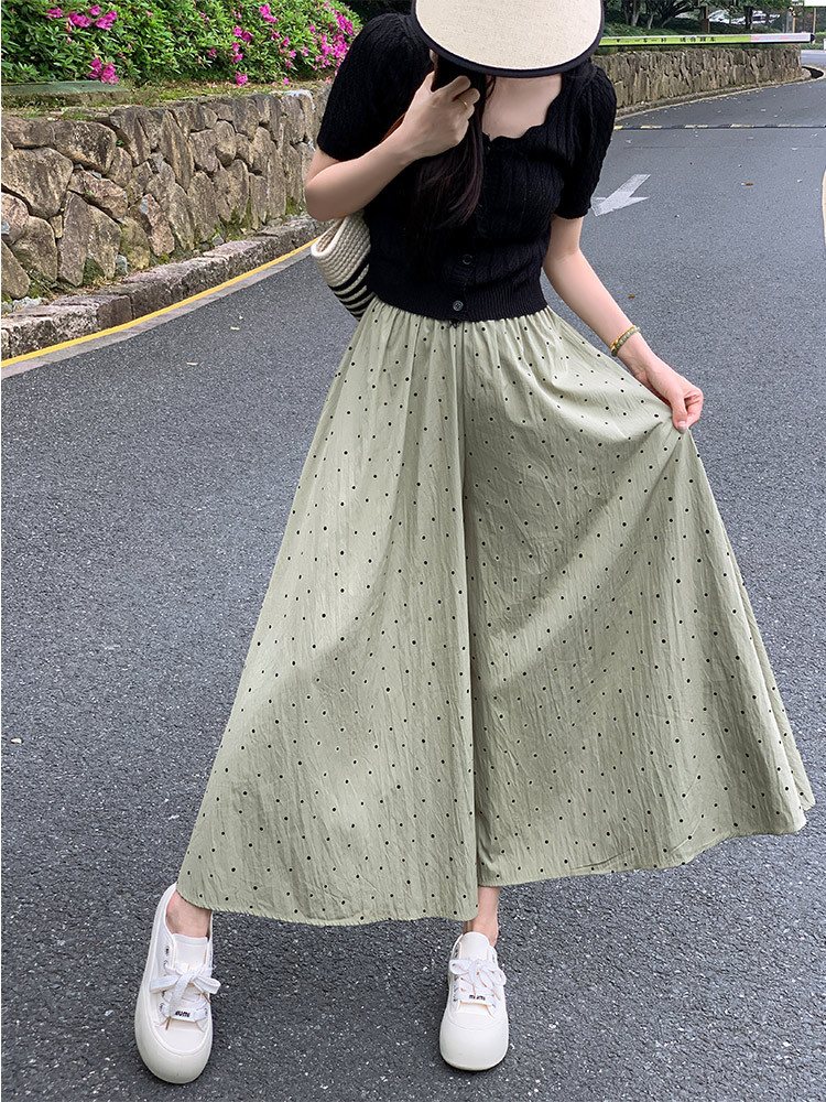 白色波点半身裙女夏季新款高腰a字显瘦休闲阔腿裤小个子裙裤