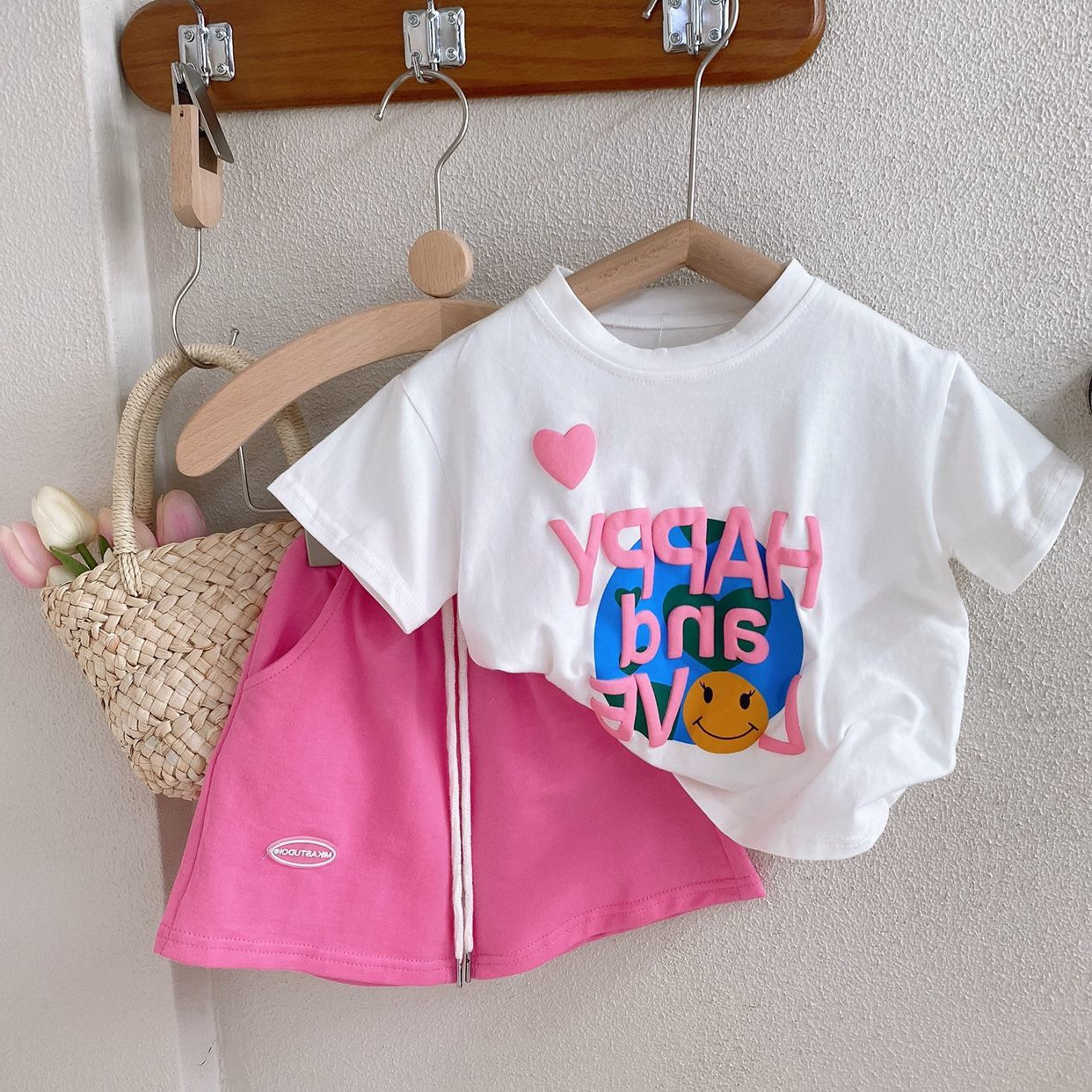 夏季女童套装宝宝洋气儿童个性潮韩版爱心字母T恤运动短裤两件套