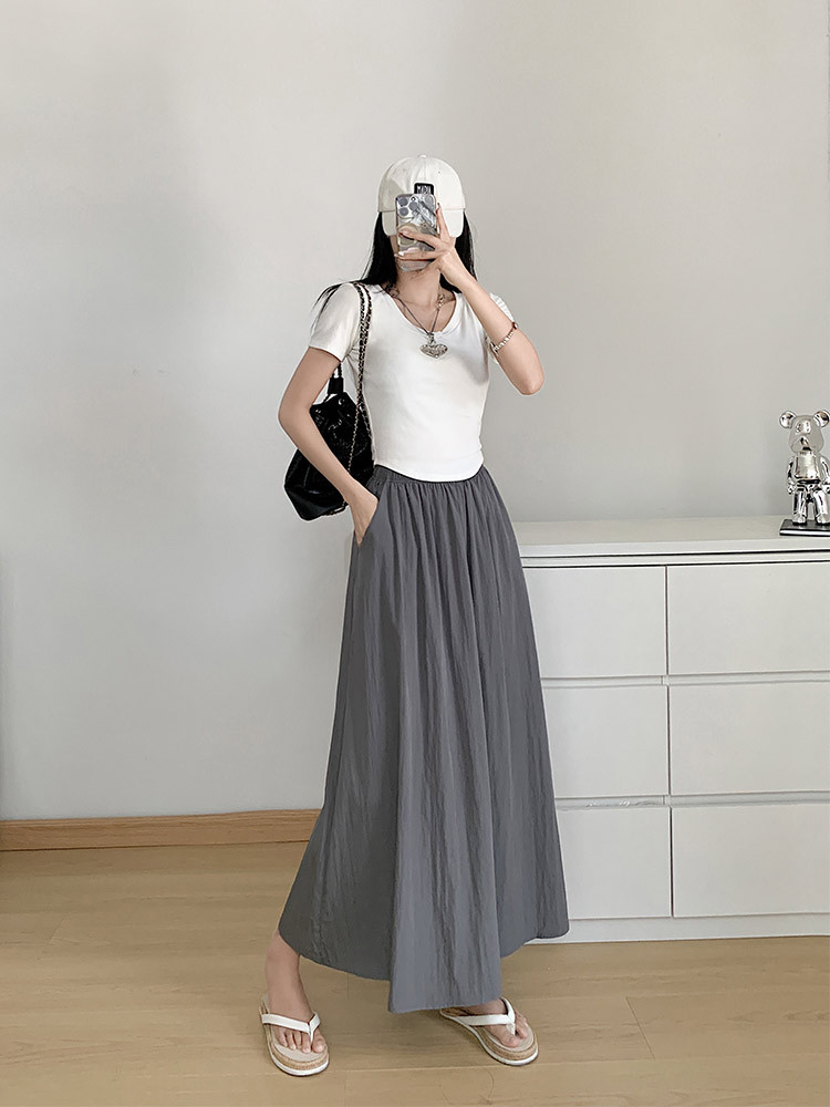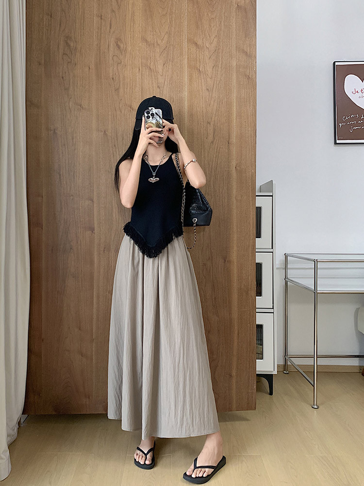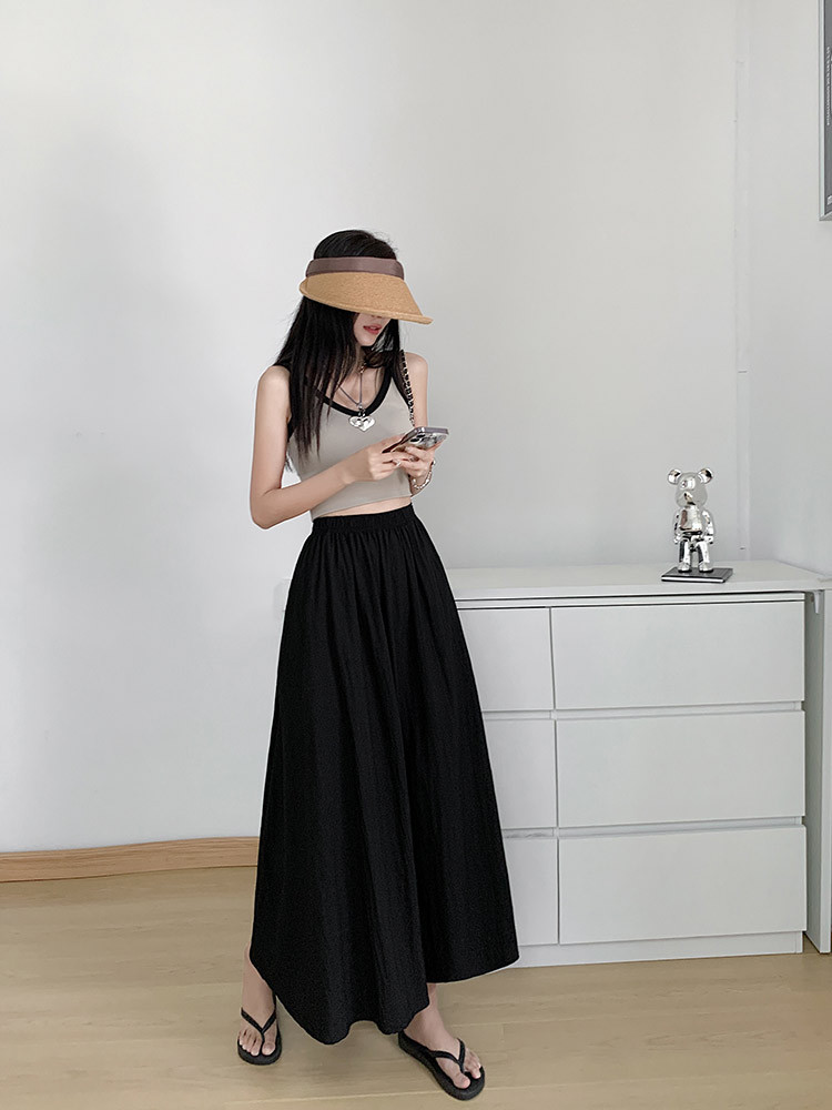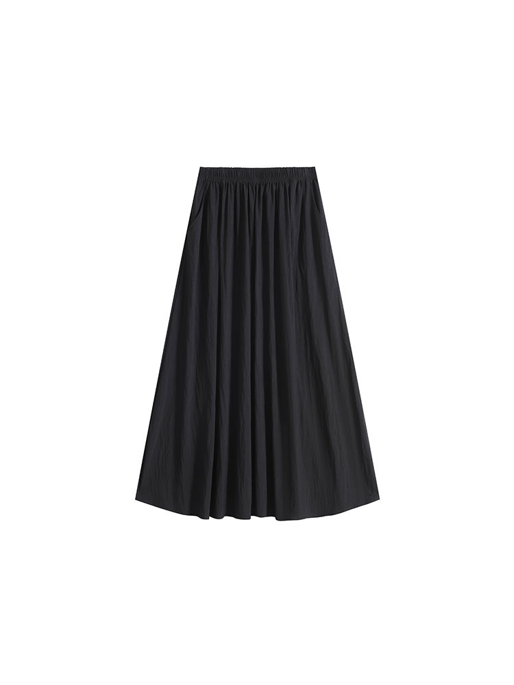黑色山本裙早春新款褶皱高腰A字复古伞裙显瘦长裙女