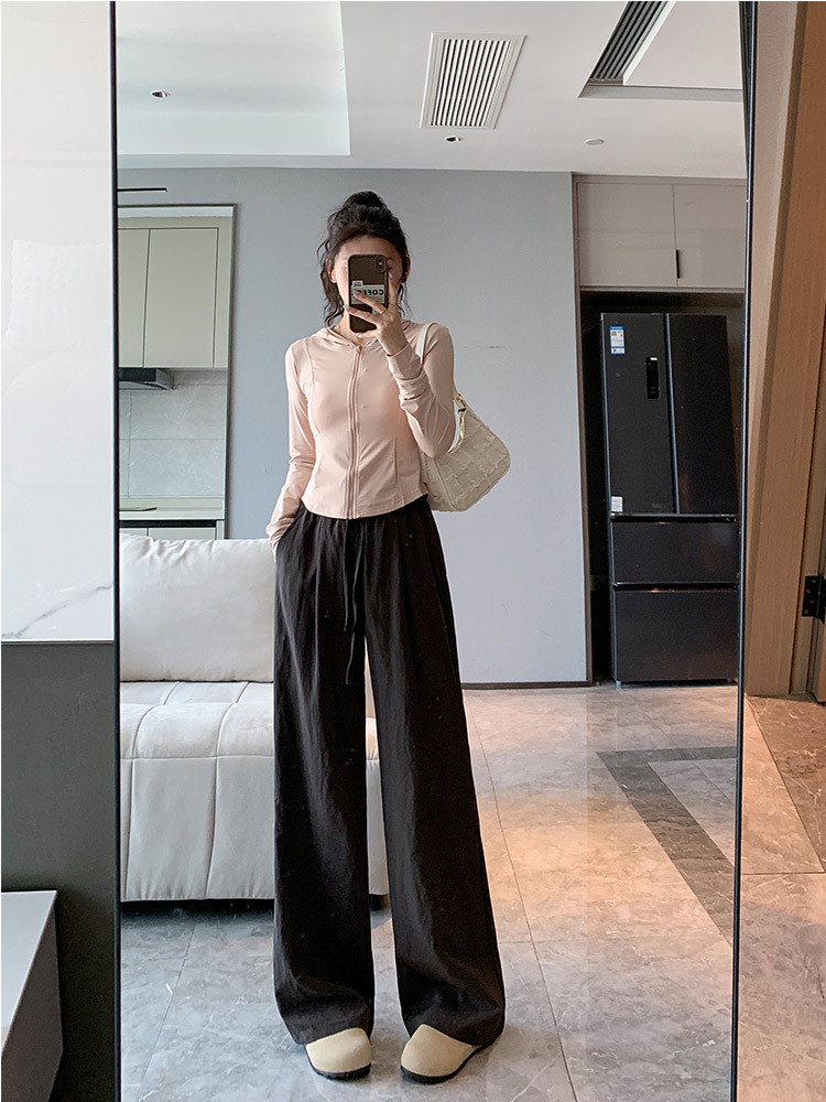 德绒保暖加长拖地裤女春秋百搭高腰阔腿裤韩版抽绳休闲直筒长裤女