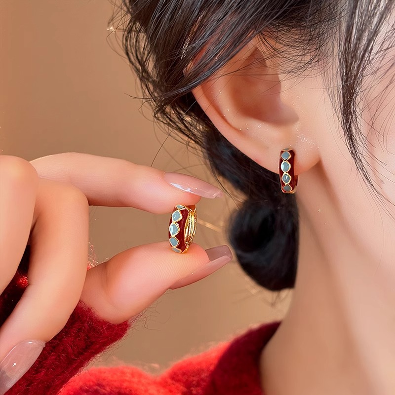 红色滴釉珐琅复古圈圈耳环女耳圈耳钉高级感轻奢耳饰新款爆款