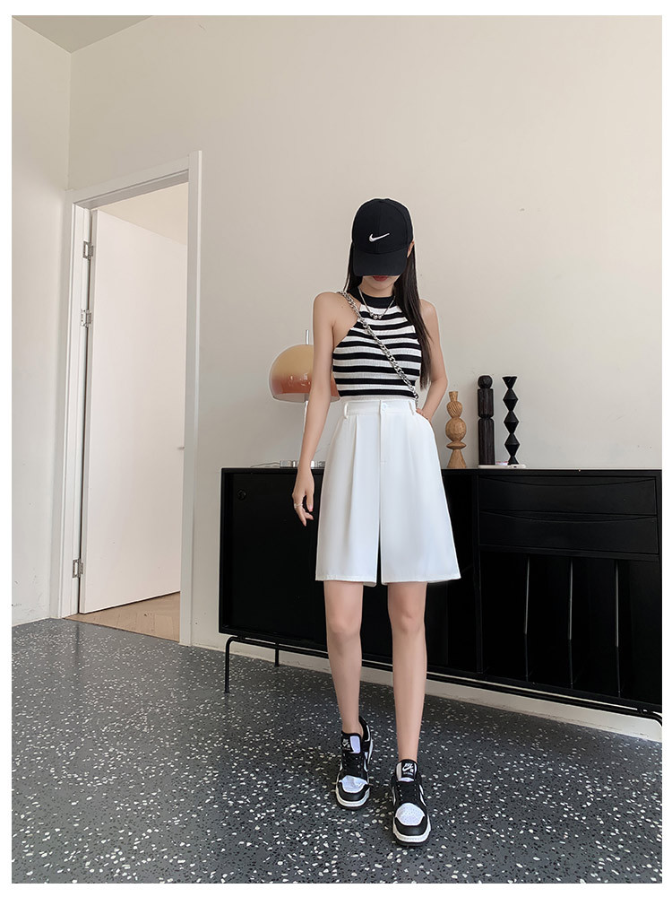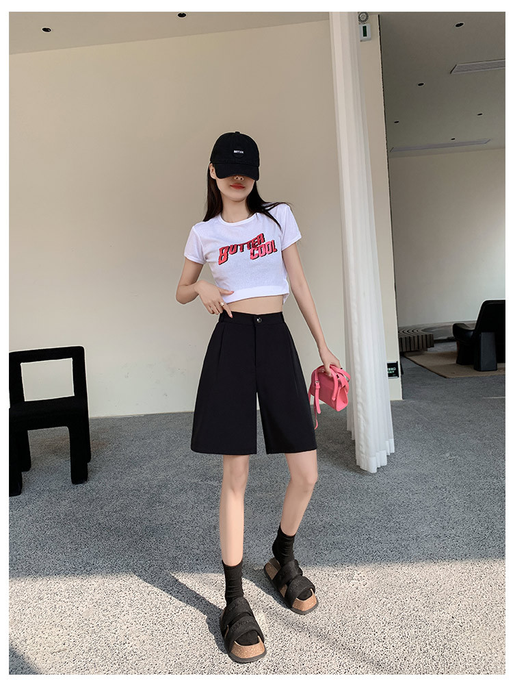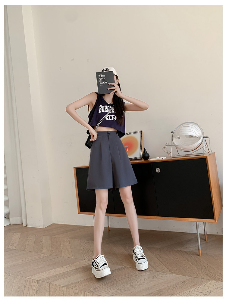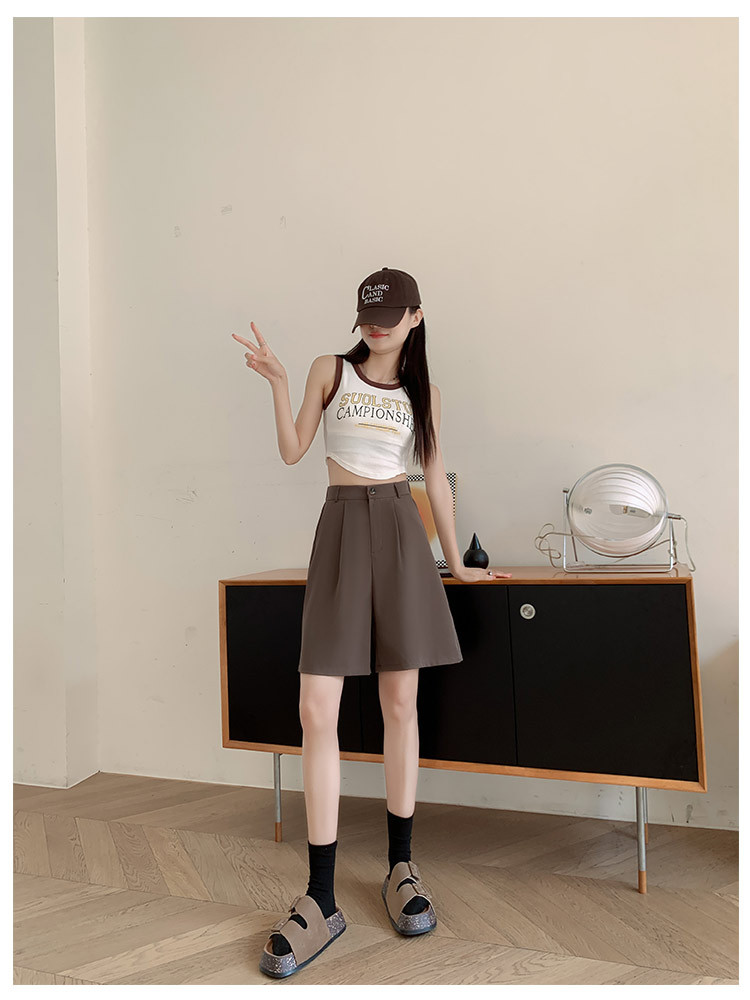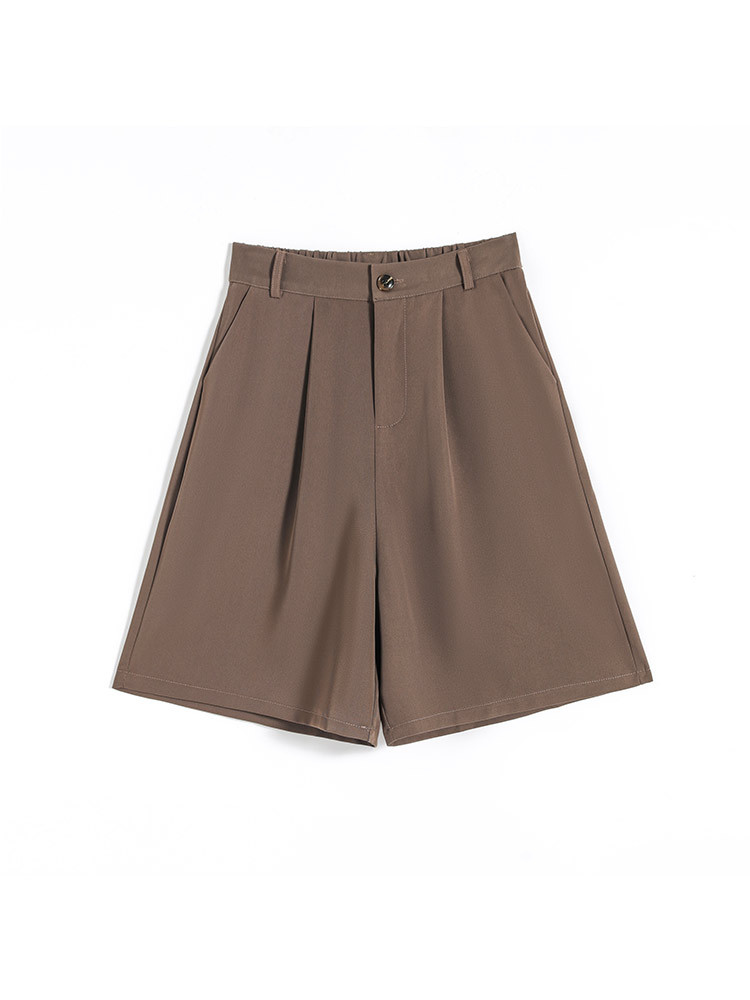 卡其色西装短裤女夏季薄款高腰显瘦宽松直筒休闲中裤阔腿五分裤子