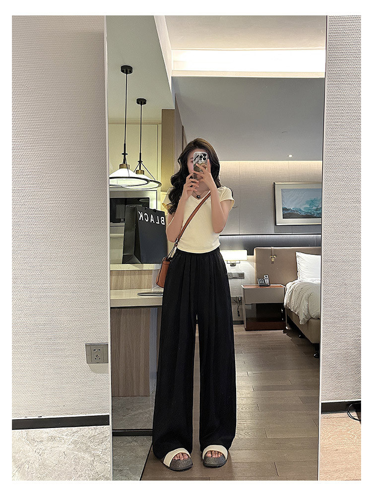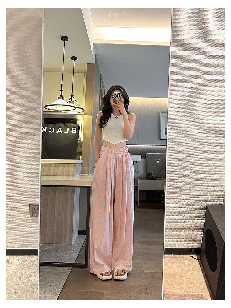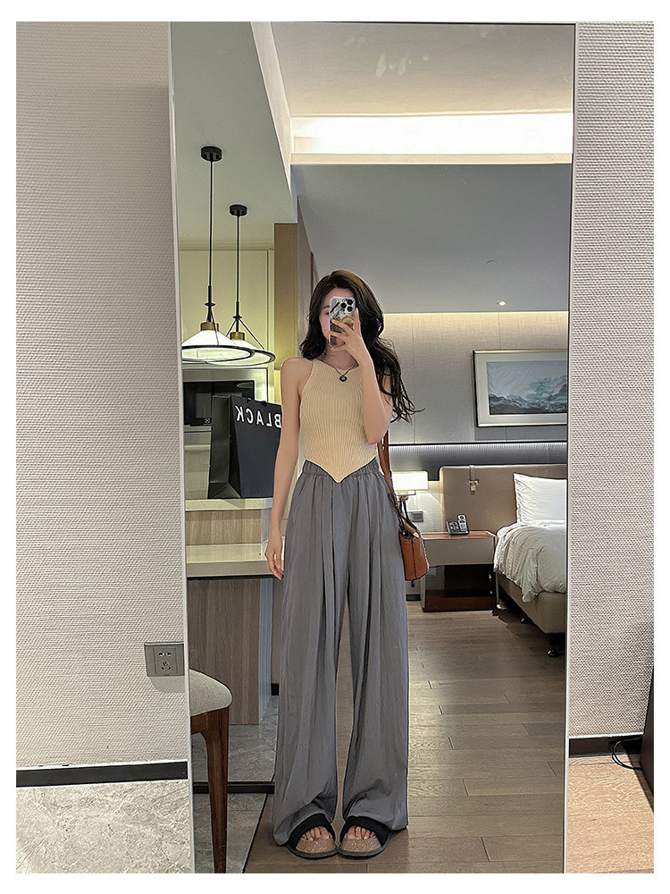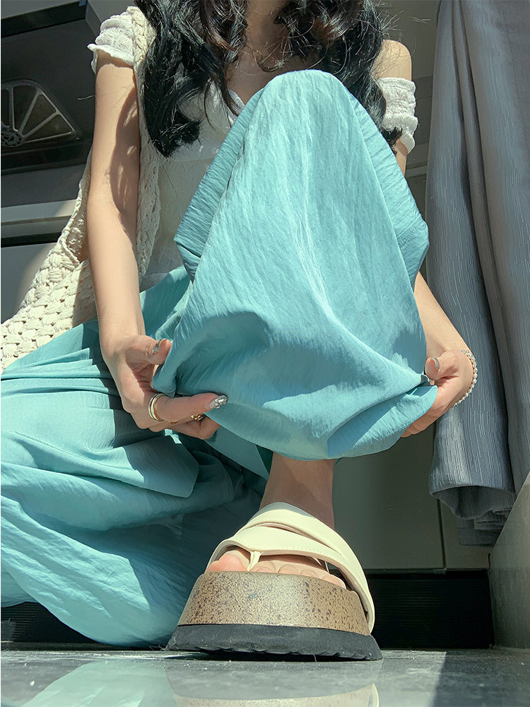 湖蓝色山本裤女春夏新款高腰垂感小个子薄款直筒阔腿裤