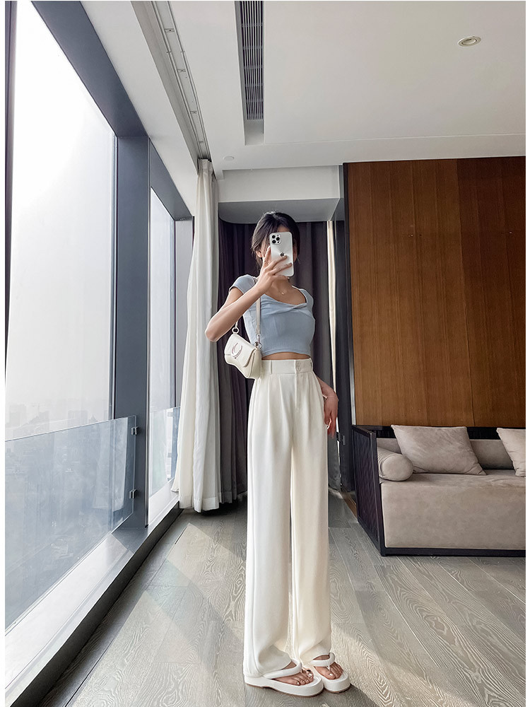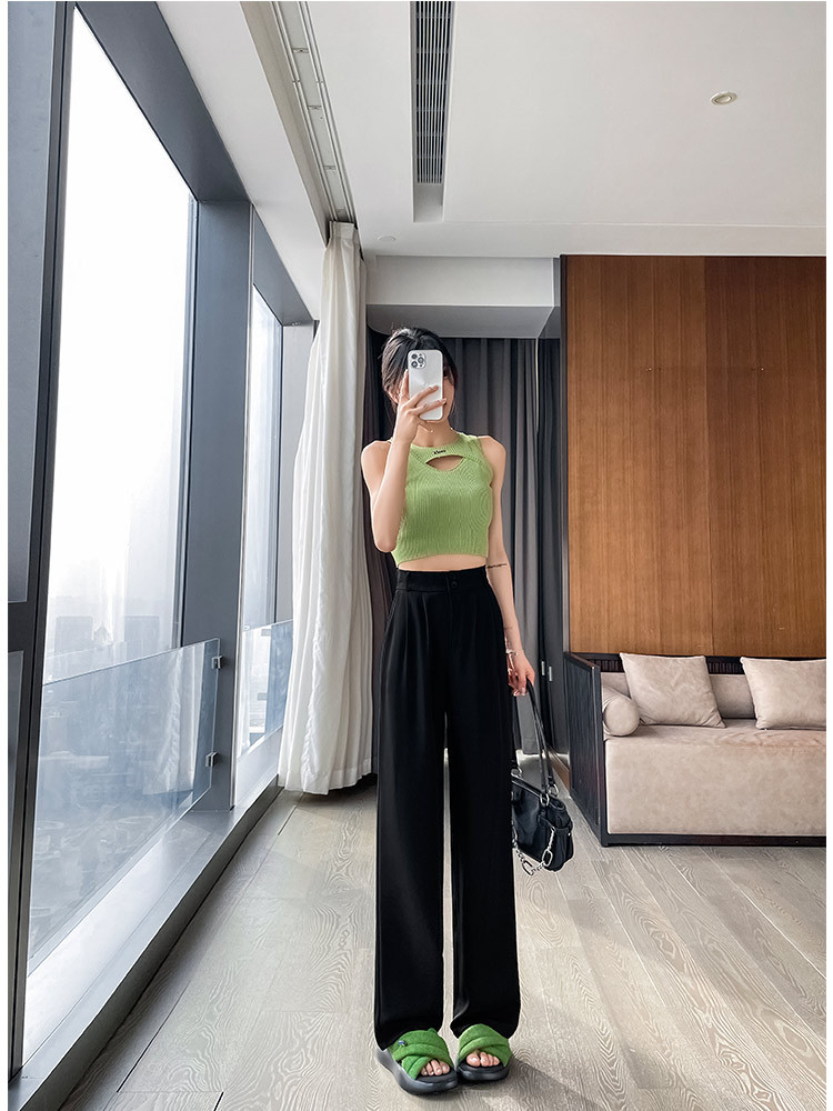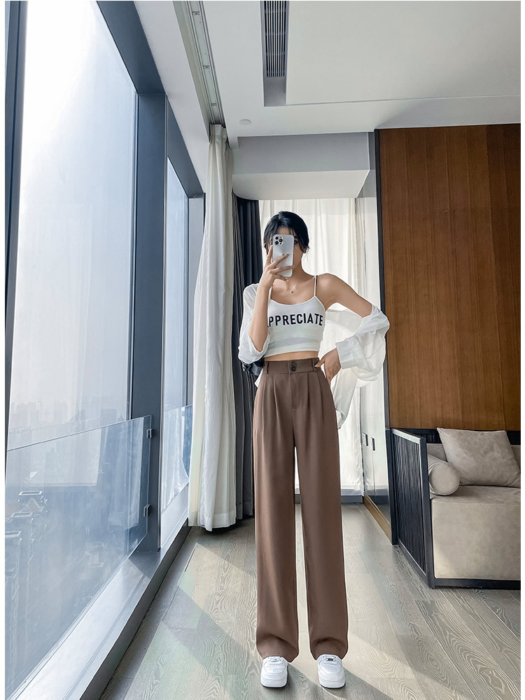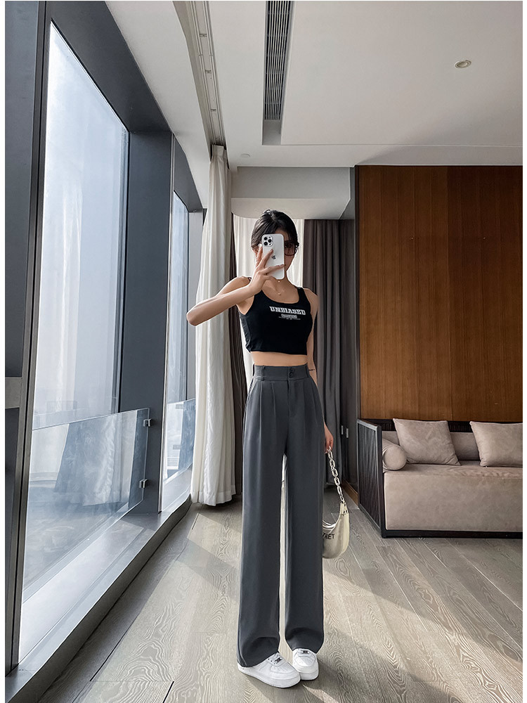 黑色西装裤女高级感垂感春夏新款直筒休闲小个子窄版阔腿裤
