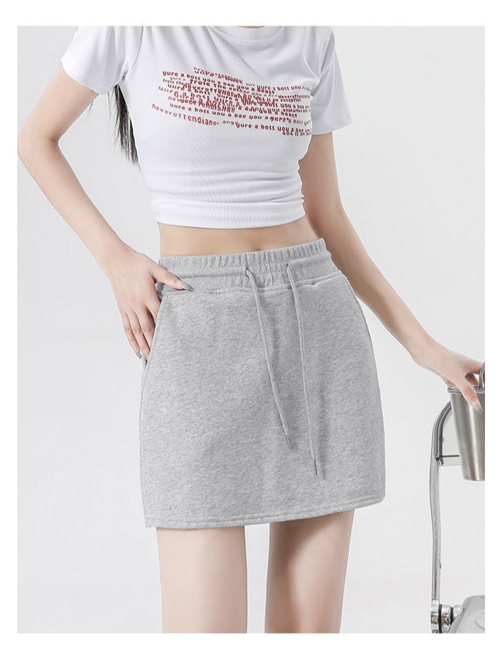 灰色运动短裙女早春新款高腰显瘦半身裙A字包臀裙小个子裙裤