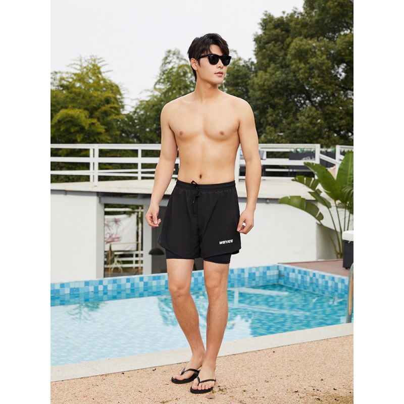 泳裤男新款男士运动沙滩平角泳裤泳衣假两件套宽松泡温泉游泳装备