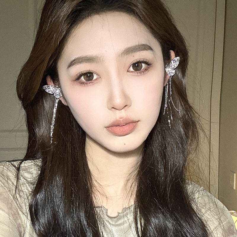 闪闪锆石蝴蝶流苏耳夹女气质轻奢高级感长款无耳洞耳骨夹百搭耳饰