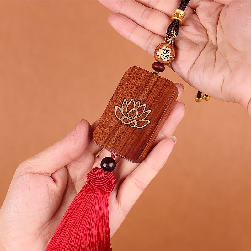 花梨木平安无事牌镶铜车内后视镜平安符创意车载挂饰汽车挂件