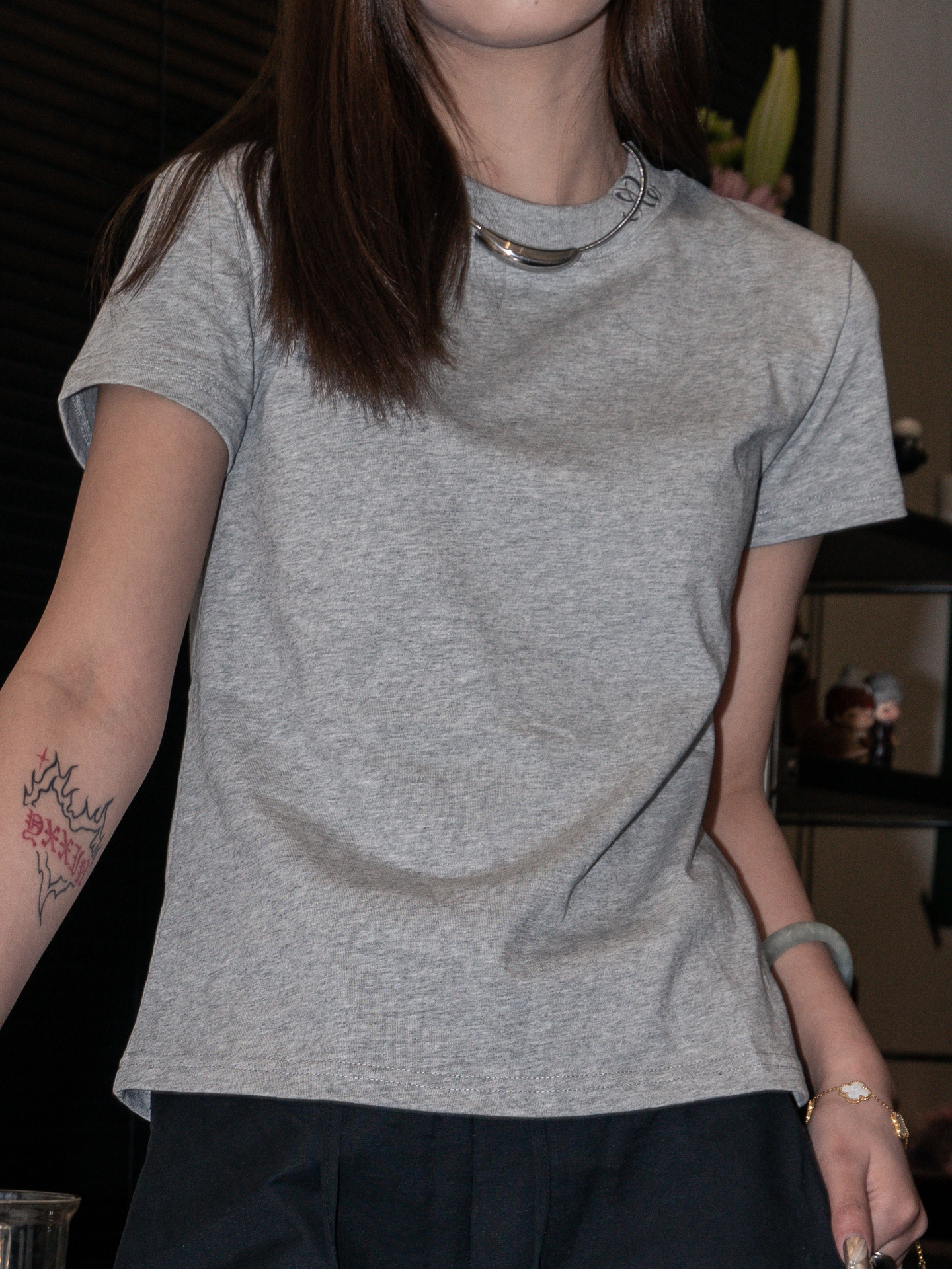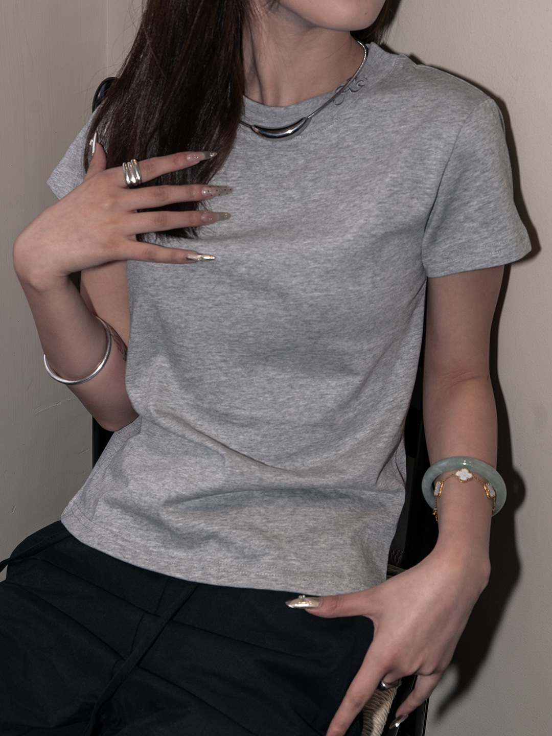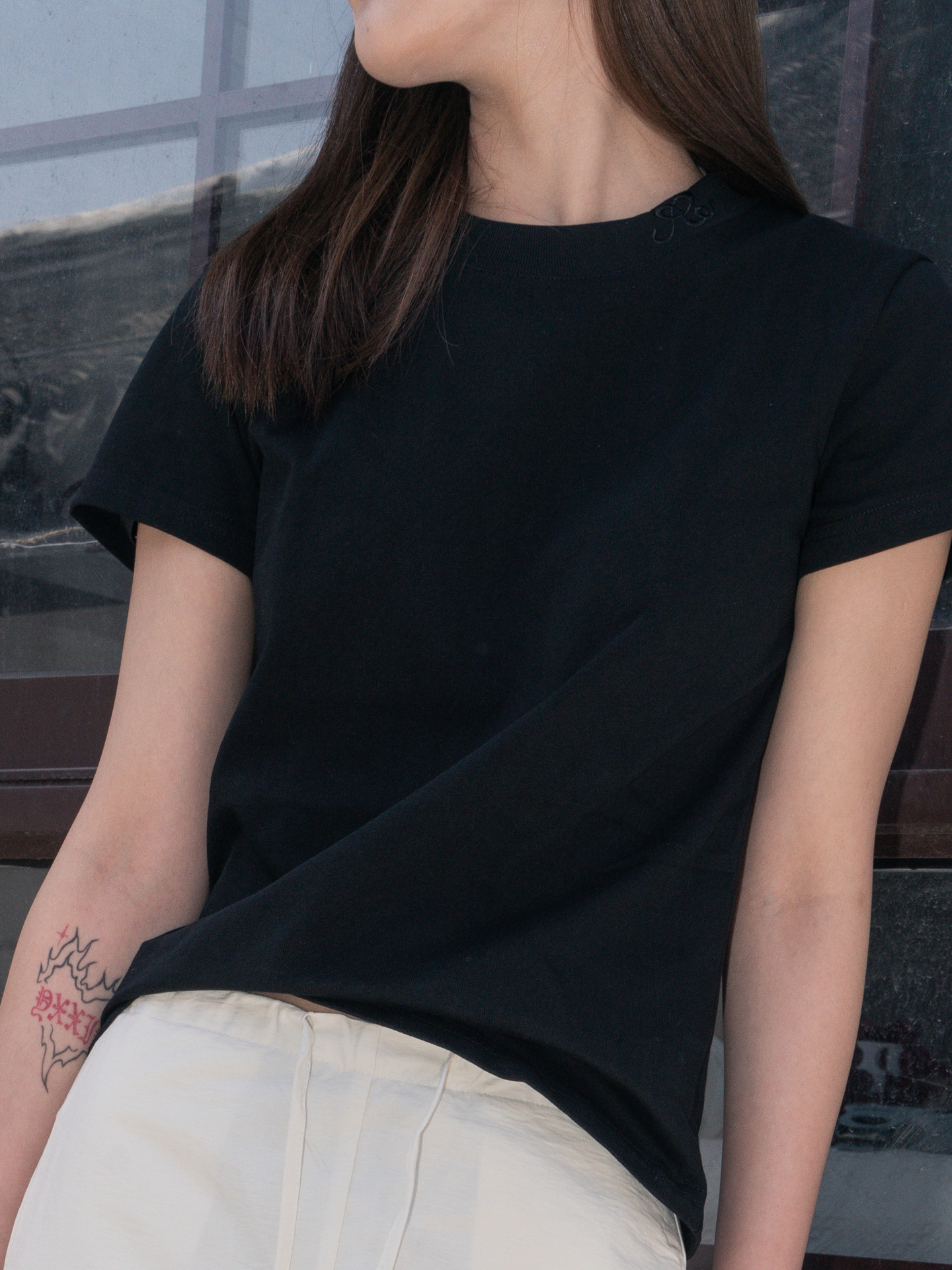基础款百搭显瘦全棉合体绣花T恤打底黑白灰短袖棉T恤女上衣