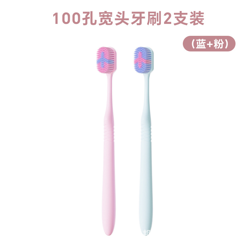 100孔宽头牙刷2支装(蓝+粉)