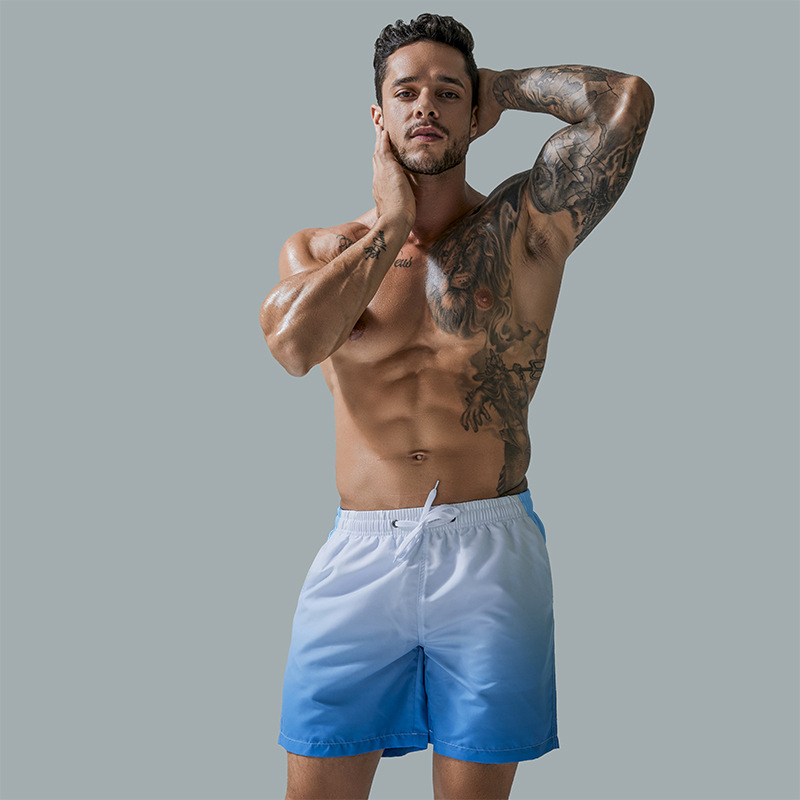欧码男式潮款五分渐变休闲短裤印花速干男士冲浪裤海滩沙滩裤
