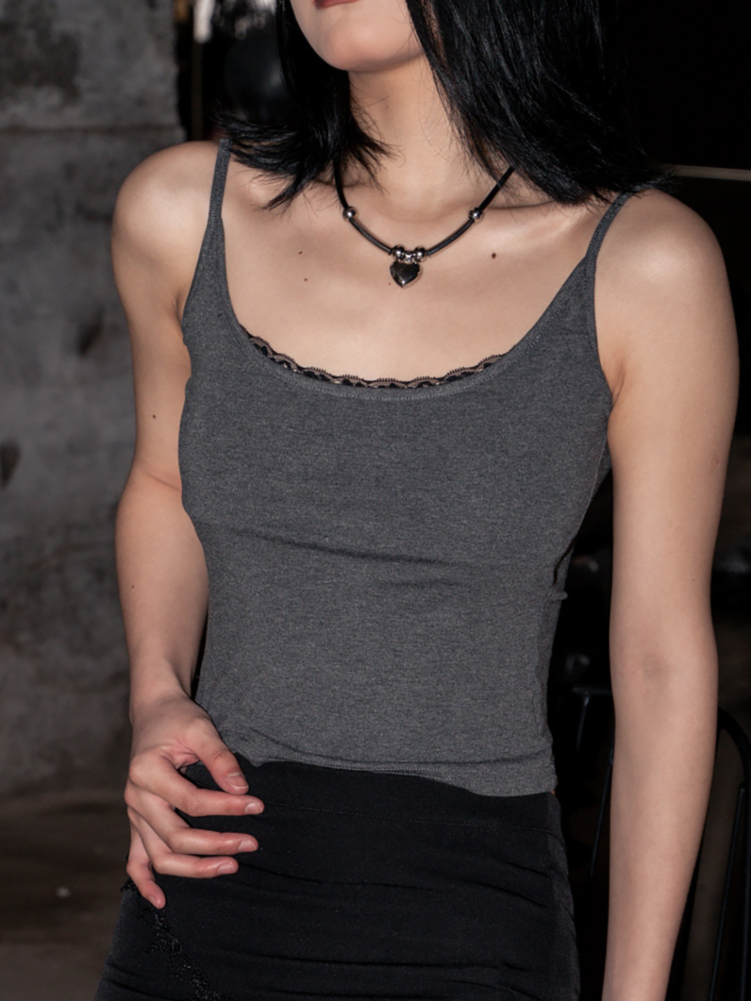 蕾丝黑灰两色遮副乳深U大露背弹力紧身运动吊带背心女