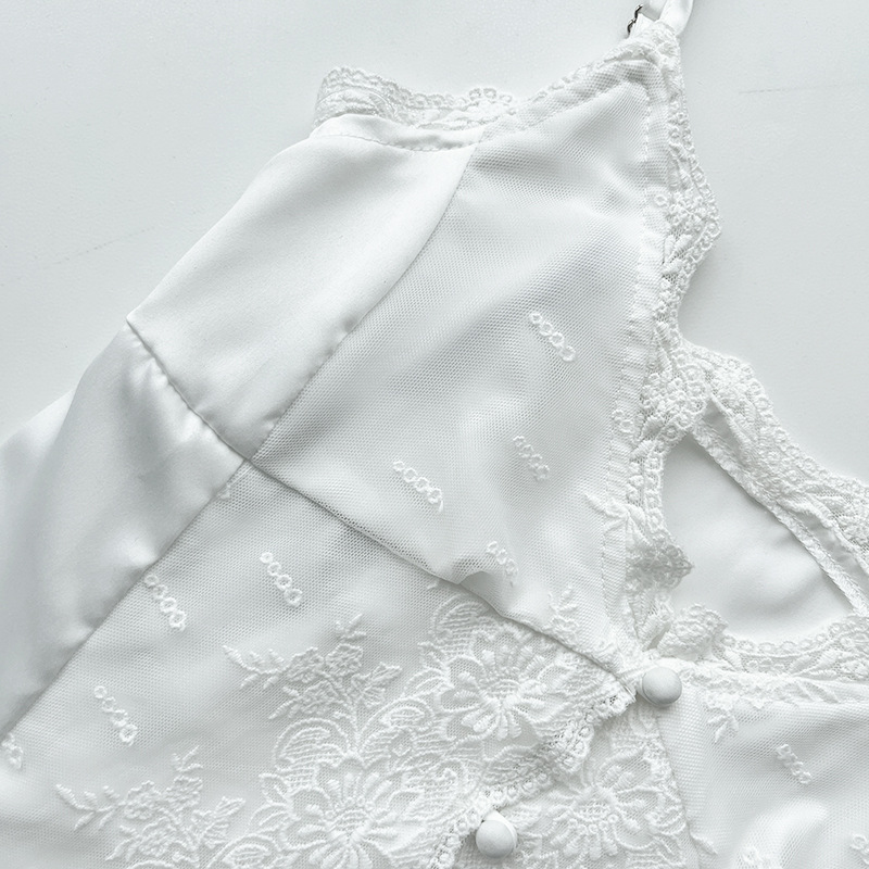 精致细肩带设计,手工缝制固定,肩带长度经过测试调整既不会走光也不会沉闷