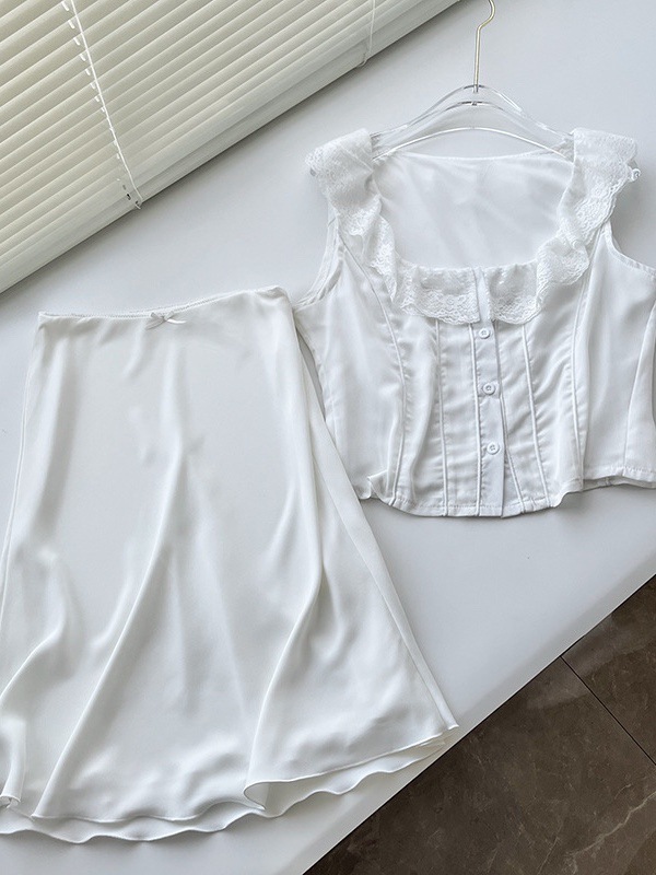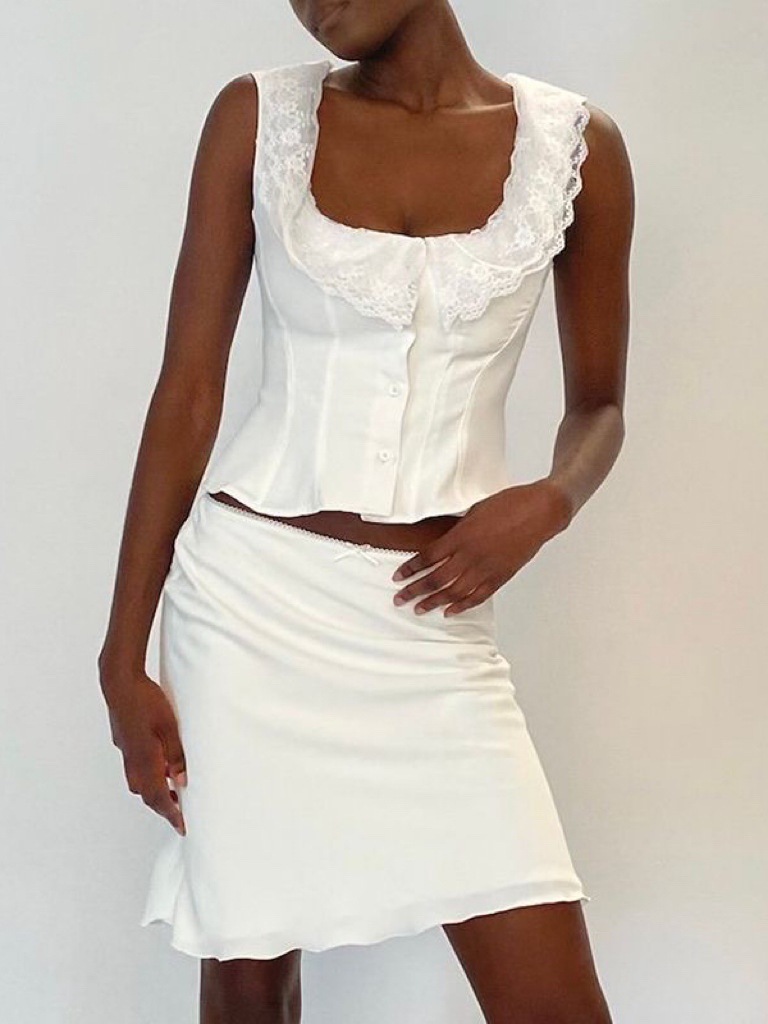 半裙中长款低腰款 腰部精致蕾丝花边拼接