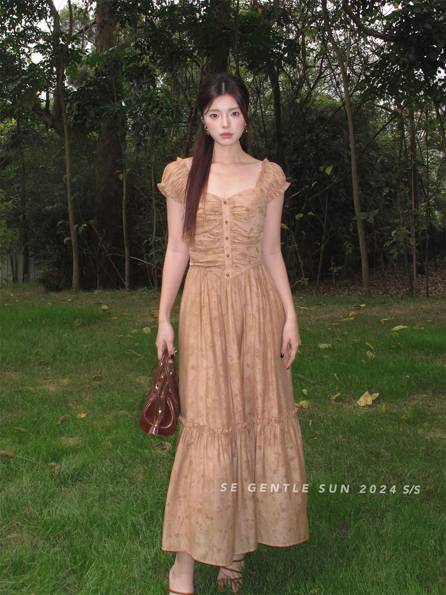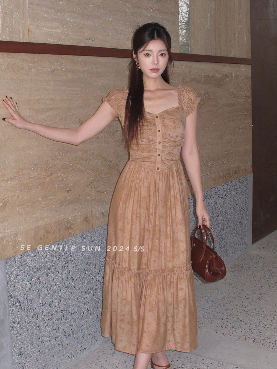 夏季新款新中式高腰复古背带连衣裙印花纯欲裙子
