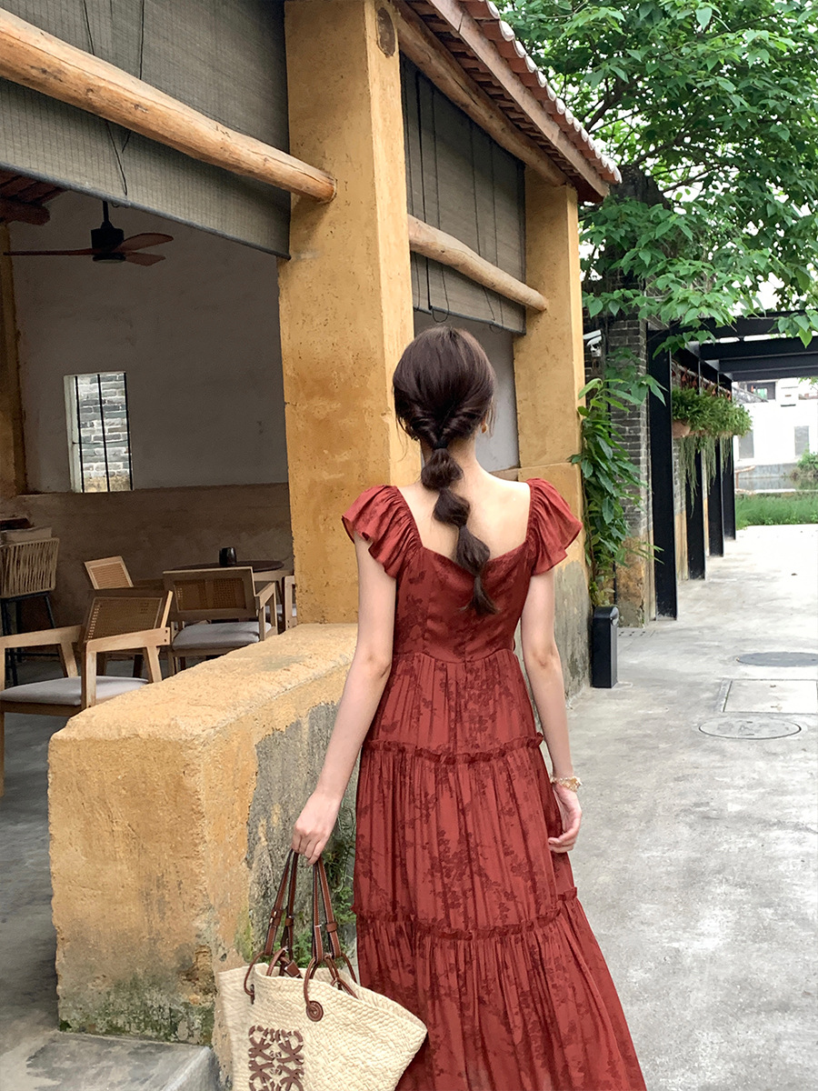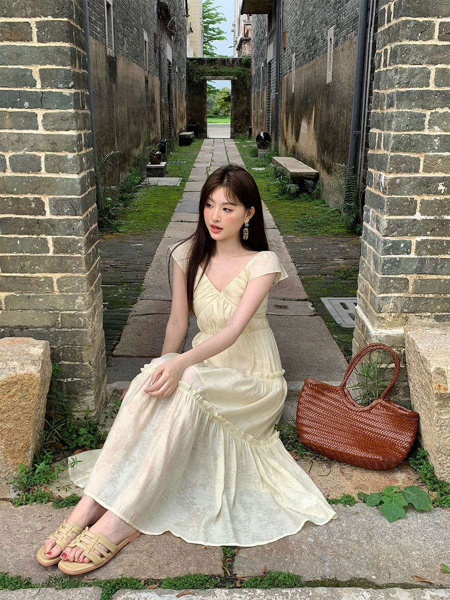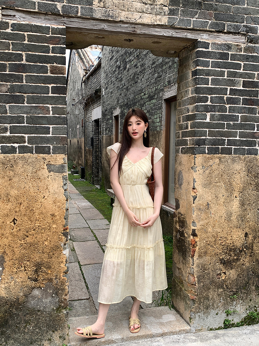 夏季新款气质网纱仙气高腰短袖连衣裙子女