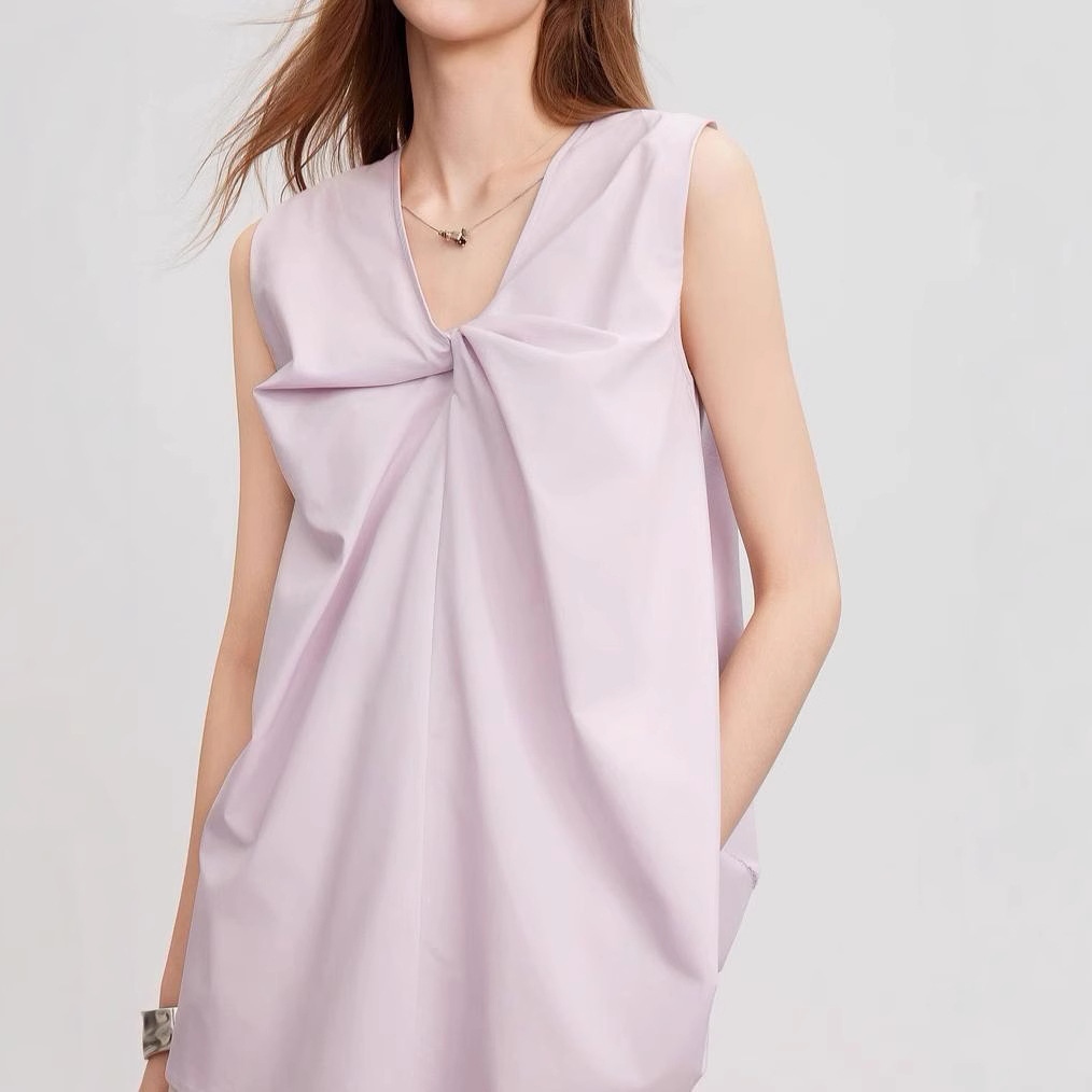 ELEL优雅扭结上衣女25夏季新款圆领通勤无袖背心衬衫