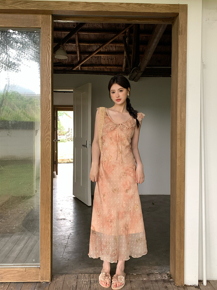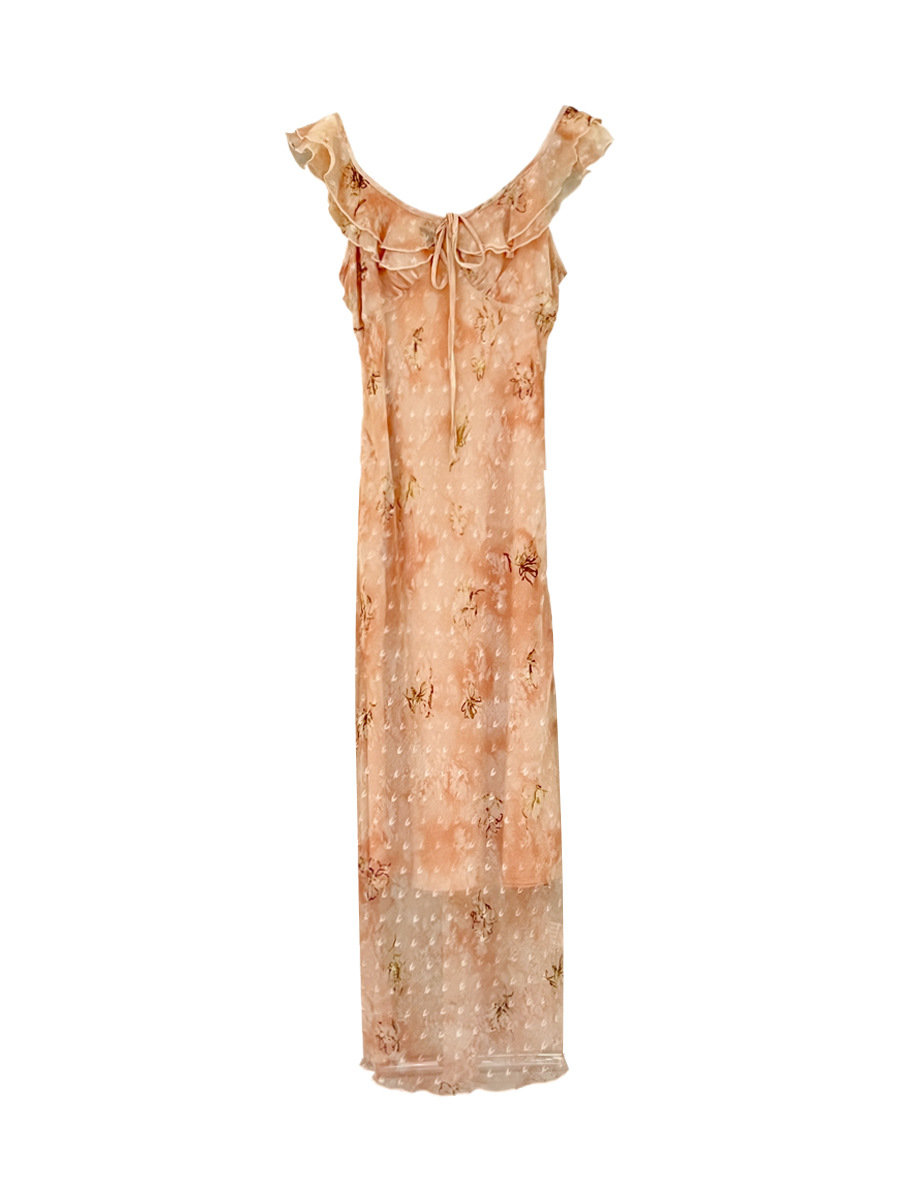 感夕阳晕染印花性感吊带冰丝睡衣睡裙女夏季薄家居服网红可外穿