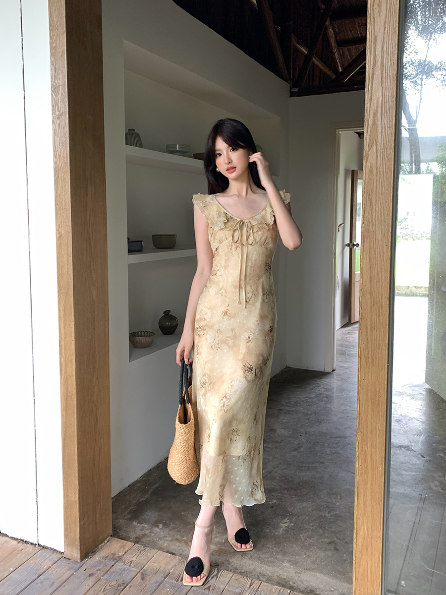 夏季新款气质印花复古高腰连衣裙显瘦长裙