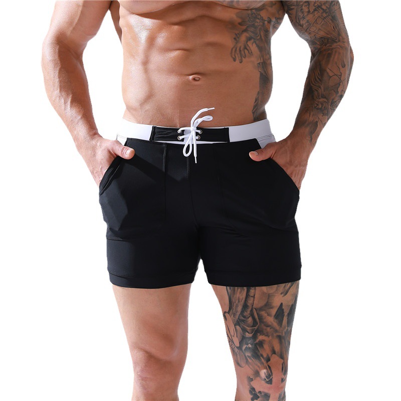 男士泳裤平角游泳裤速干泡温泉四角短裤性感系带口袋大码沙滩