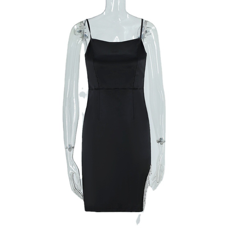 欧美风ins新款女装春夏时尚性感纯色吊带露肩连衣裙女气质