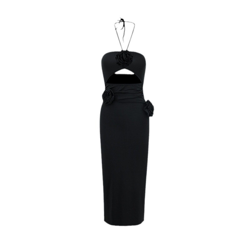 欧美风性感辣妹女装秋冬新款爆品挂脖露背镂空连衣裙