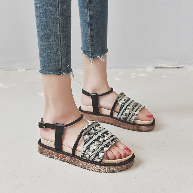 罗马凉鞋女夏季新款学生厚底欧洲站松糕跟鱼嘴外贸wish女鞋潮