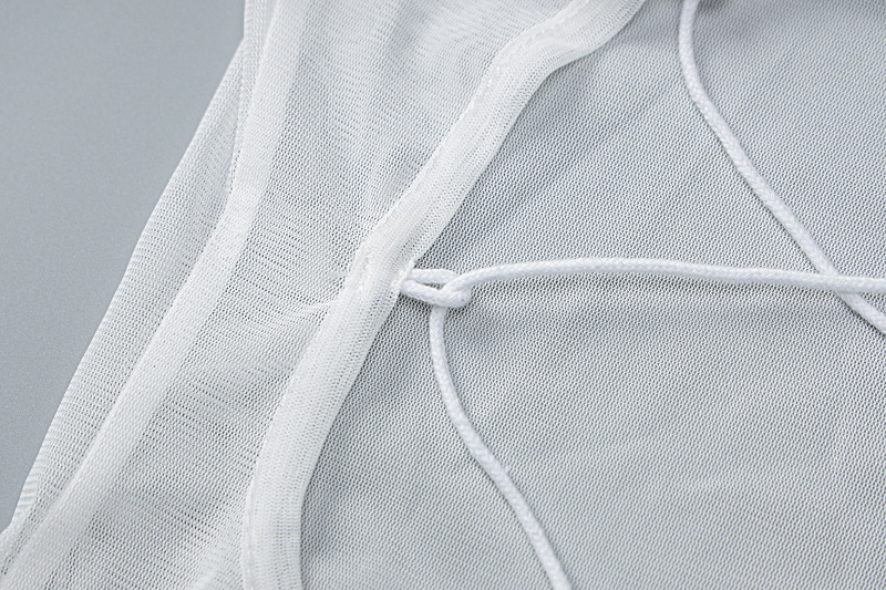 ins风特色新款女装透视网纱性感露背系带拼接木耳边长款T恤