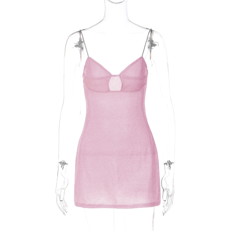 欧美优质新款女装性感气质名媛风裹胸拼接镂空亮丝吊带连衣裙