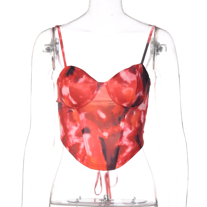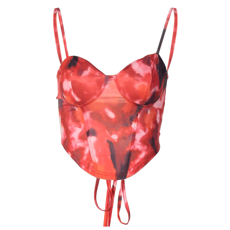 Ins风夏欧美女装新款爆品印花吊带潮流后背系带小背心