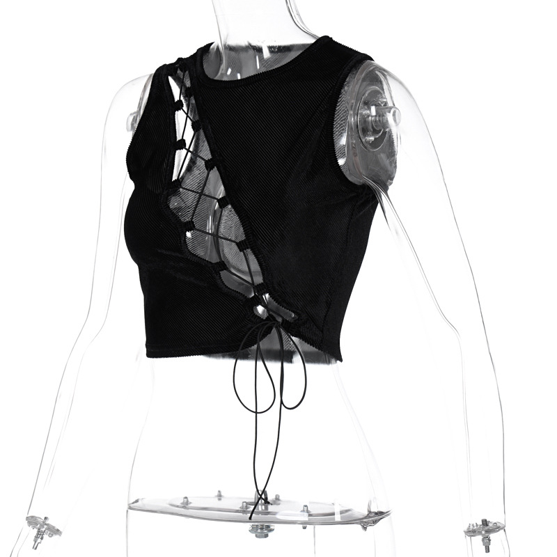 欧美夏季爆品新款胸前斜边挂耳系带小背心