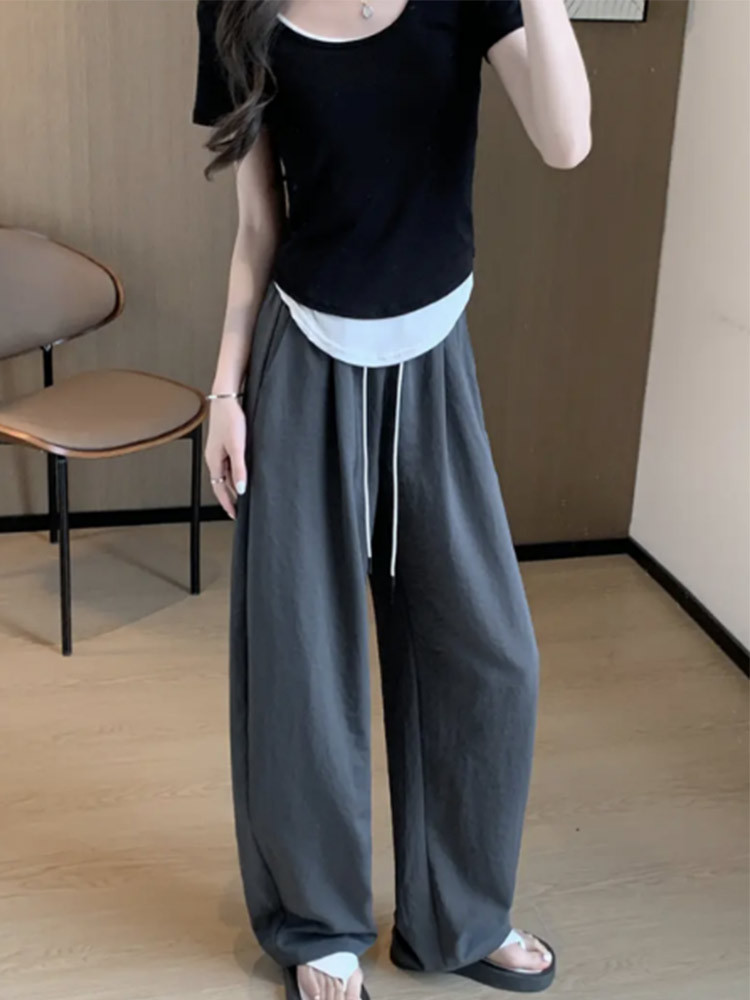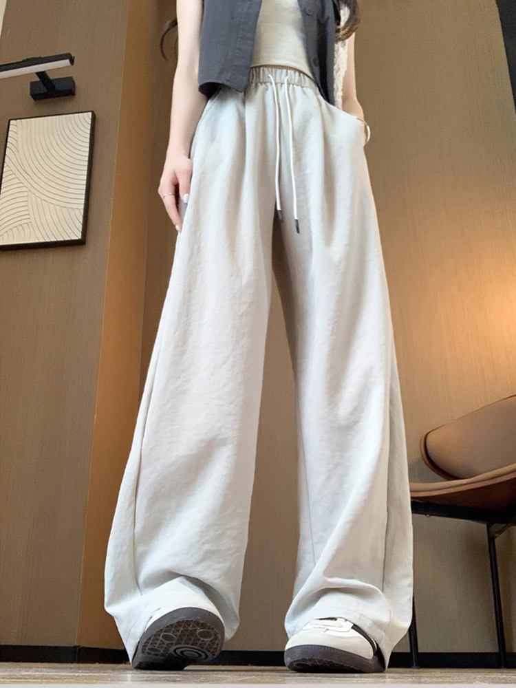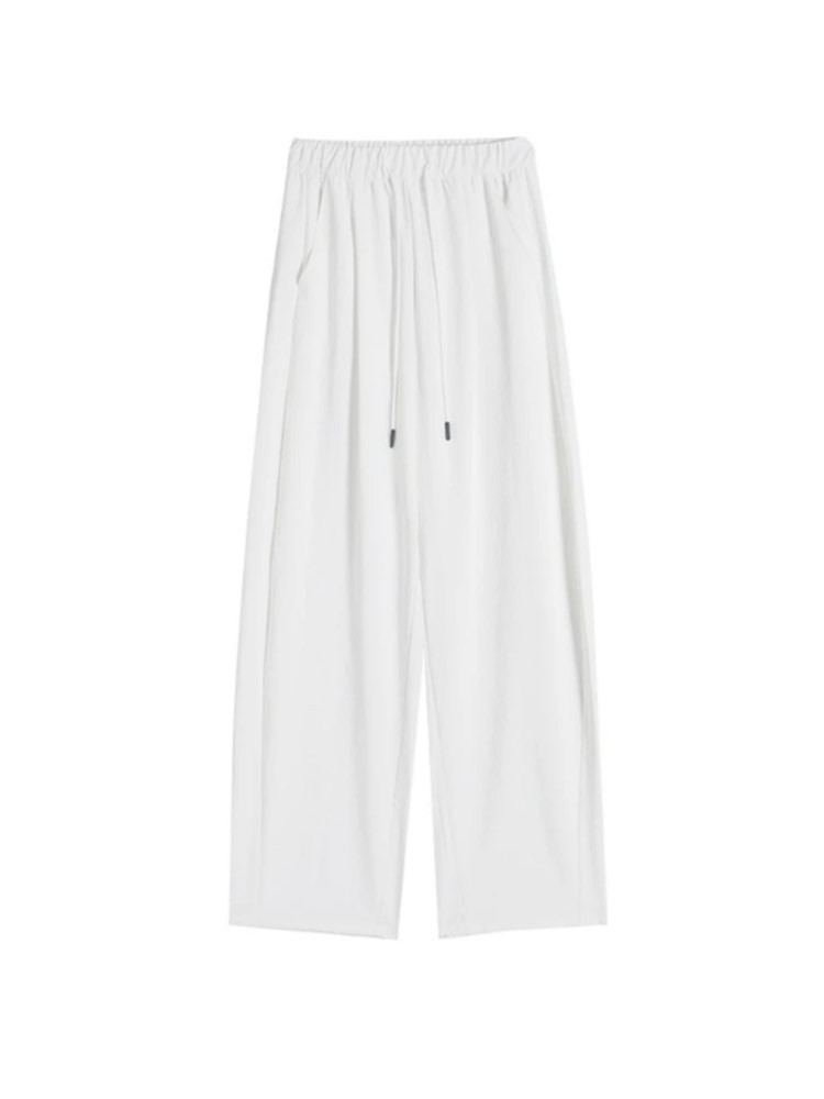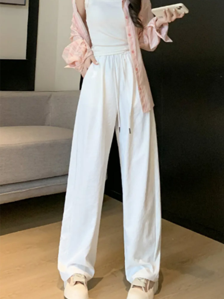 白色运动阔腿裤女夏季薄款高腰垂感宽松小个子休闲速干香蕉弯刀裤