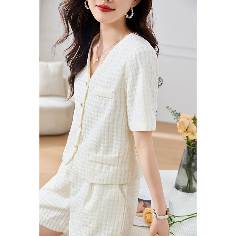 小香风时尚风车格短袖西装套装女夏薄款小个子西服短裤两件套简约