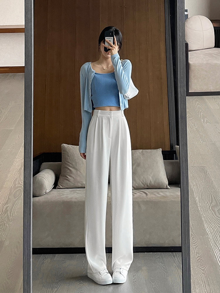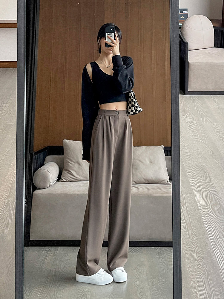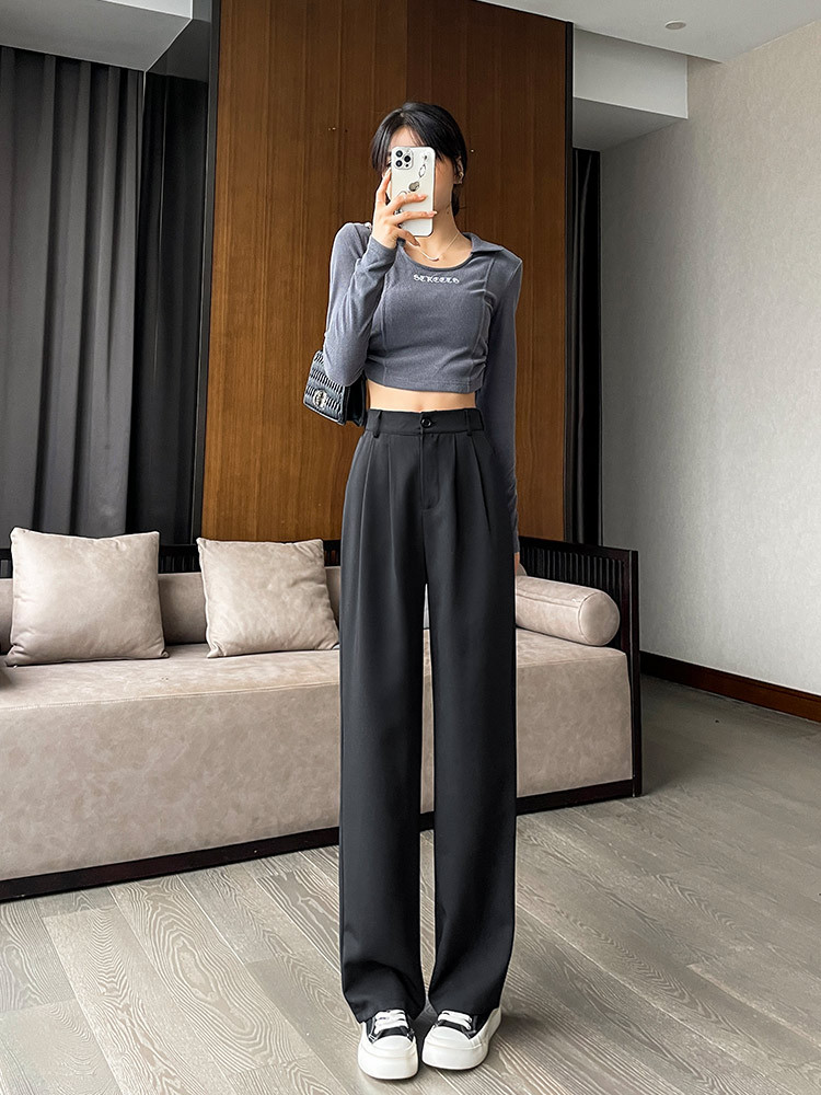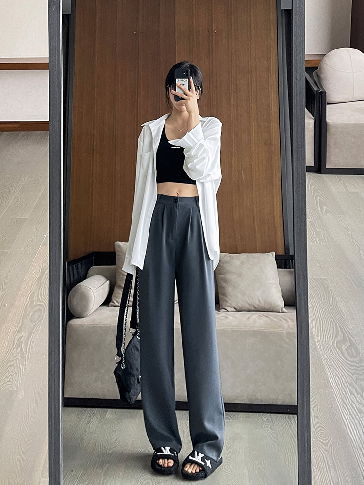 灰色西装裤高级感垂感女春夏新款高腰小个子阔腿裤长裤