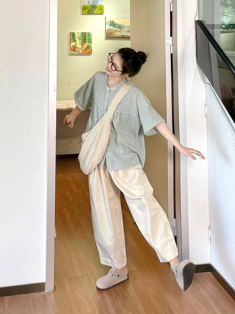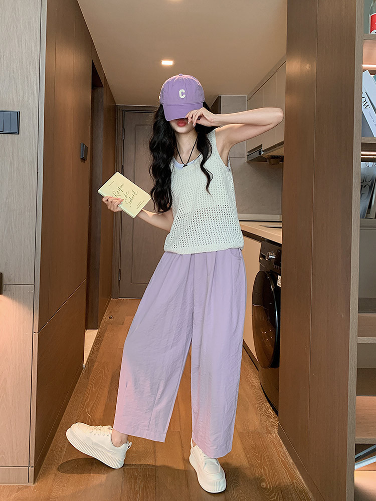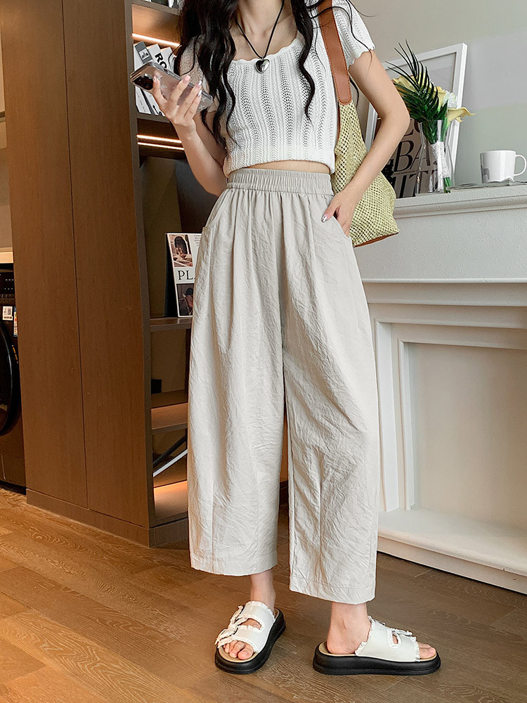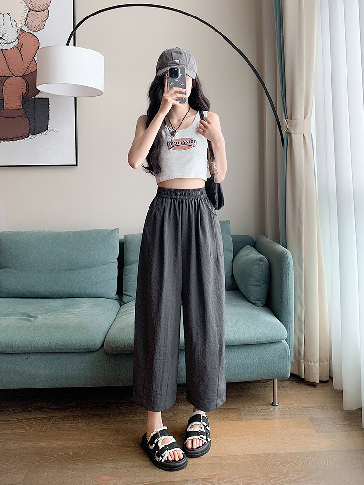 冰丝萝卜裤女夏薄款新款小个子高腰直筒八九分阔腿哈伦奶奶裤