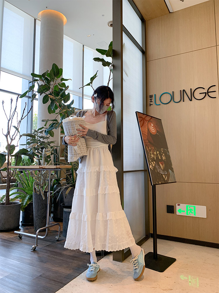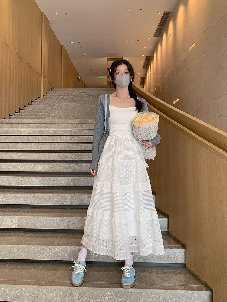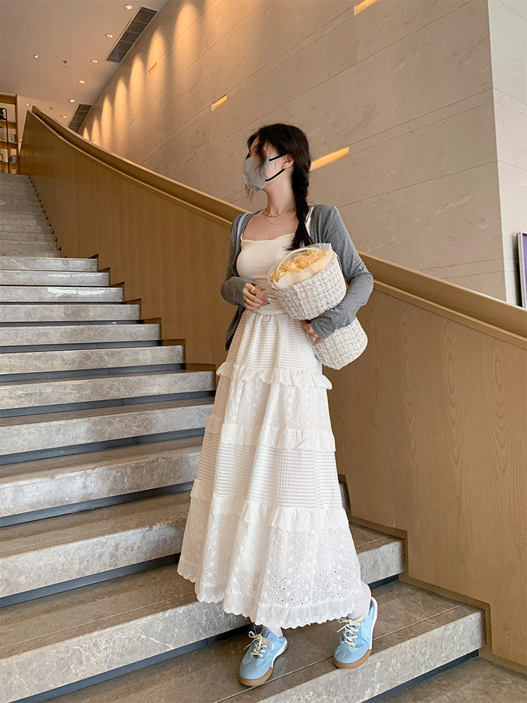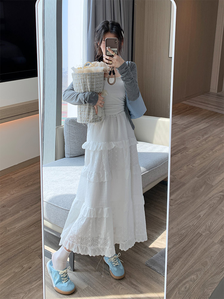 白色半身裙女春秋季高腰显瘦温柔风a字裙中长款蕾丝蓬蓬蛋糕裙子