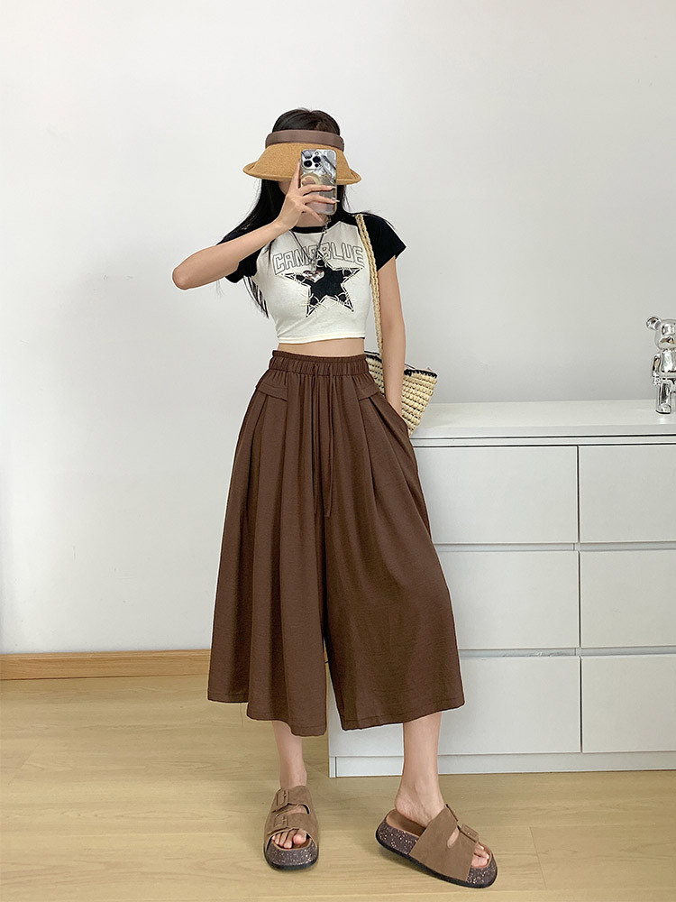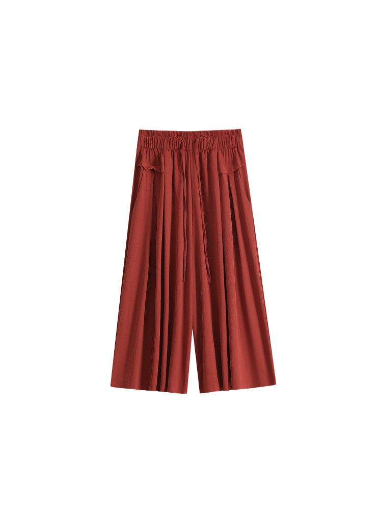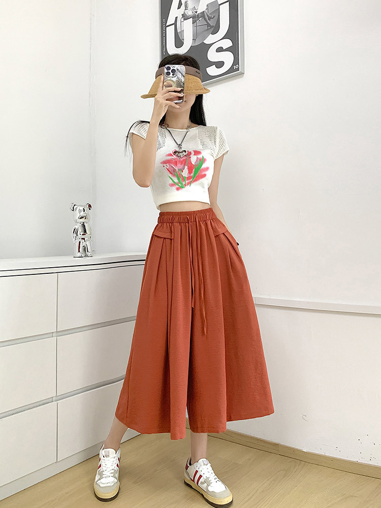 橘色冰丝裙裤夏季薄款高腰休闲显瘦小个子半身雪纺七分阔腿裤