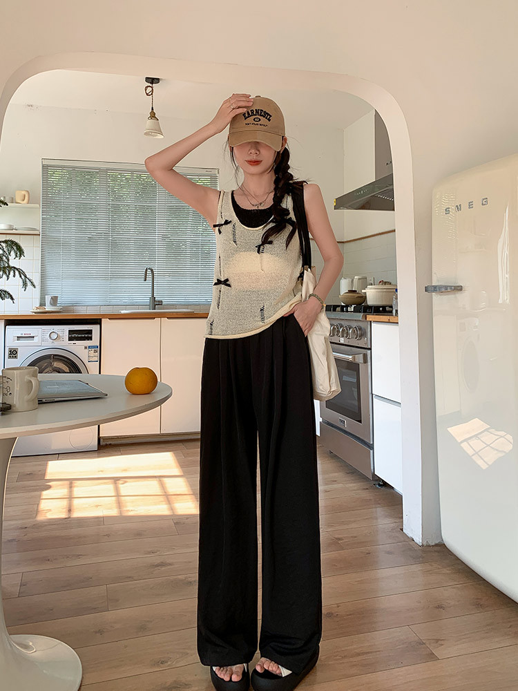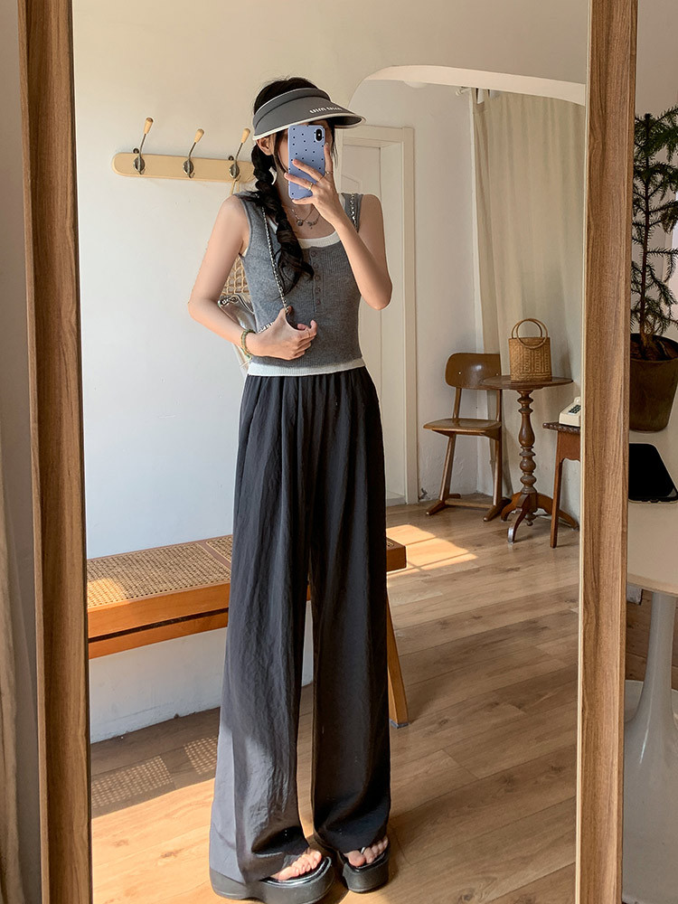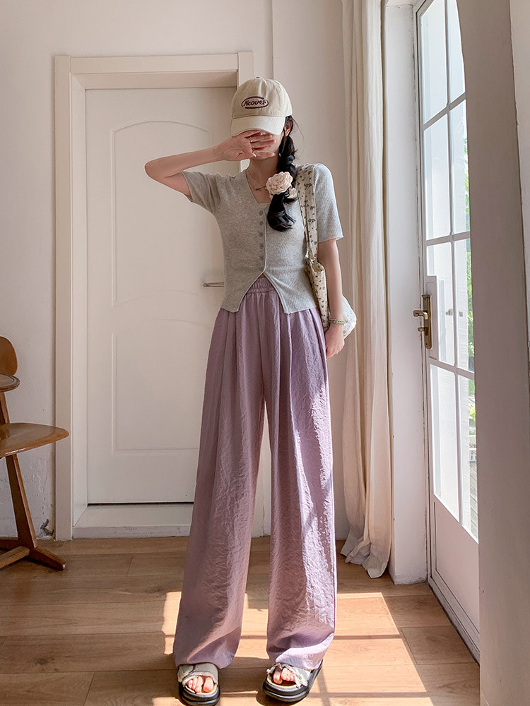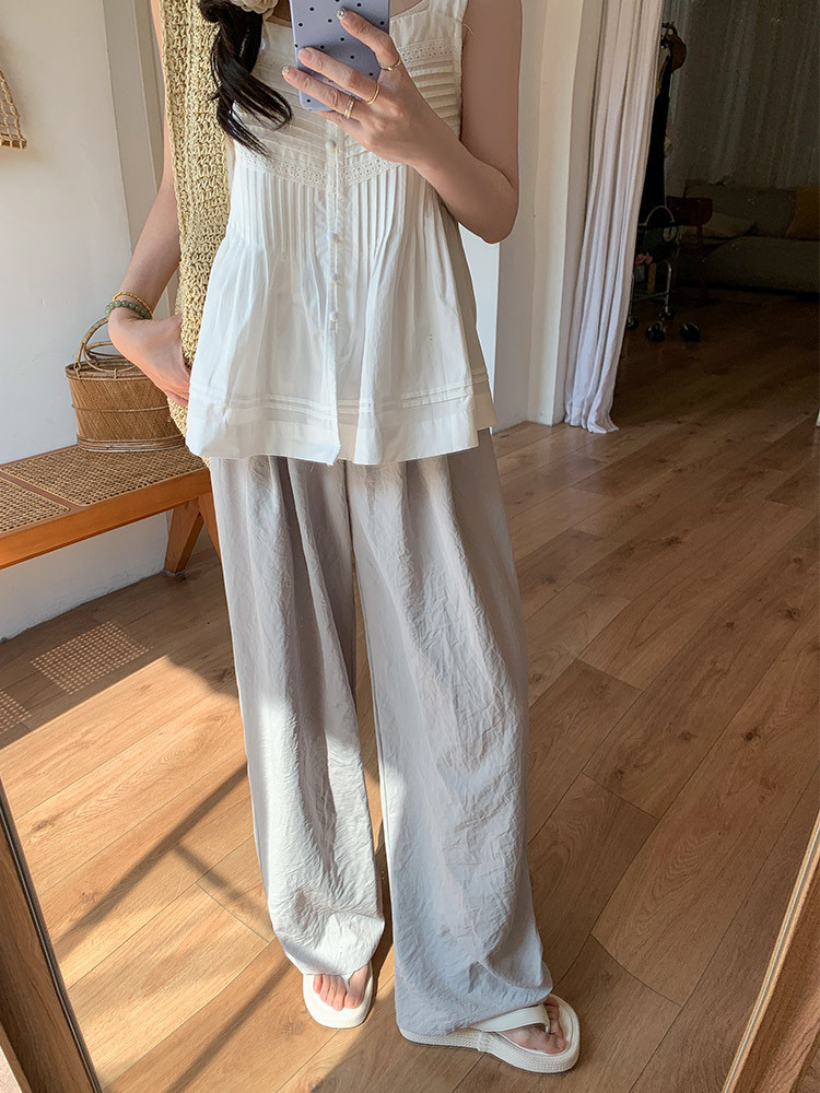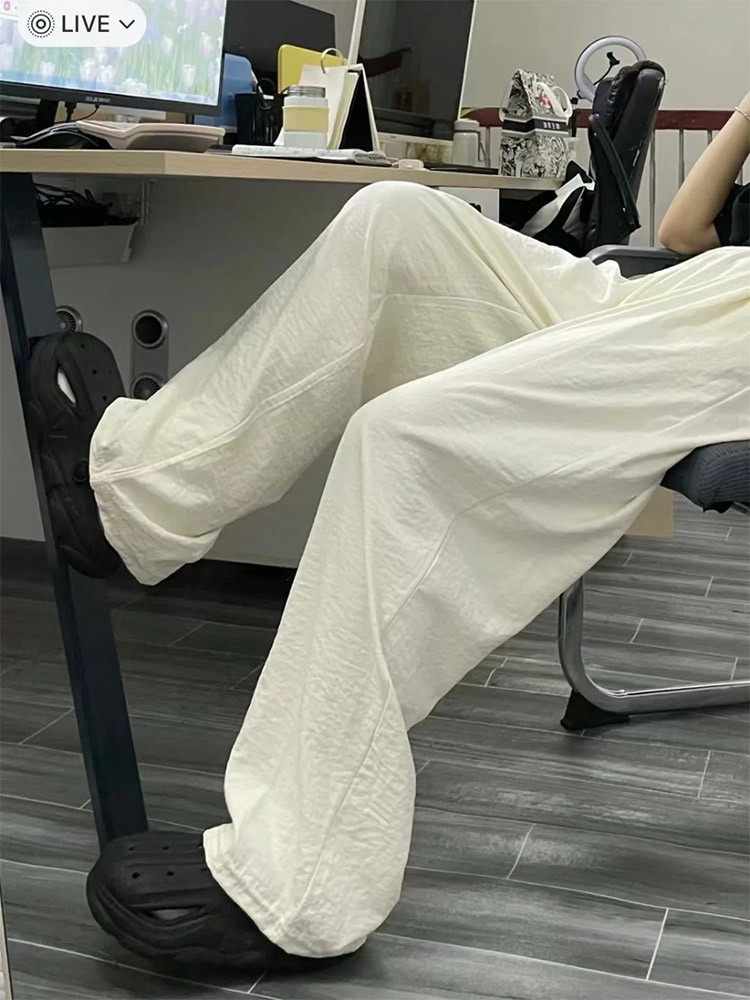 白色奶芙肌理裤女宽松直筒裤夏季慵懒休闲拖地高腰垂感阔腿裤