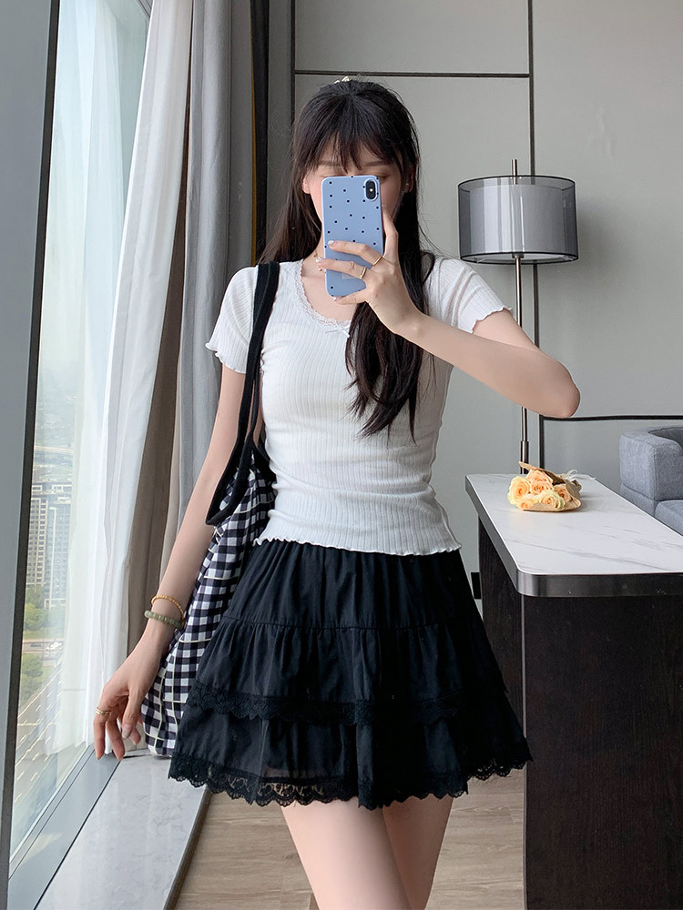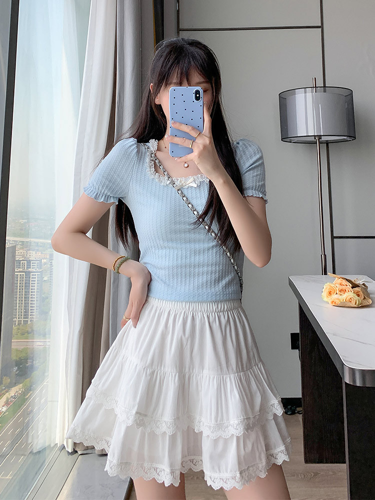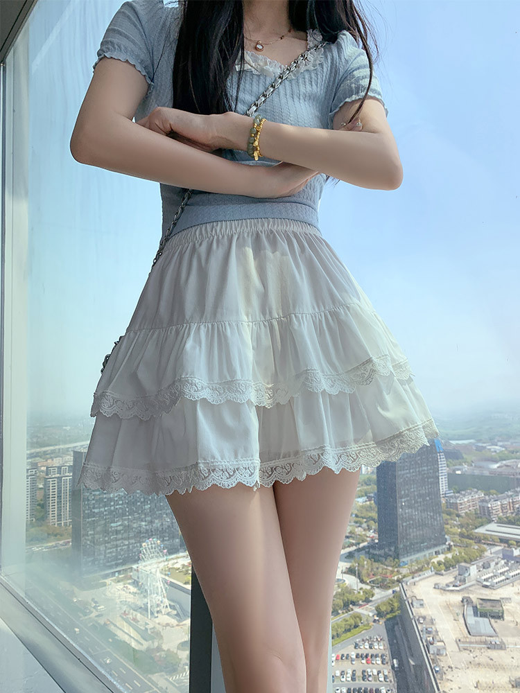 白色蕾丝蛋糕裙短裙夏季新款高腰a字蓬蓬芭蕾风短款半身裙子