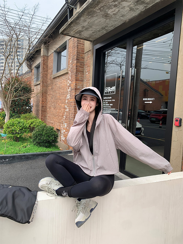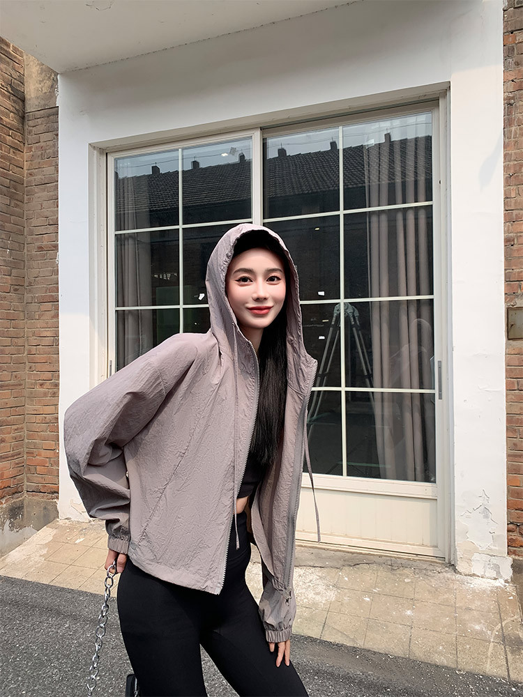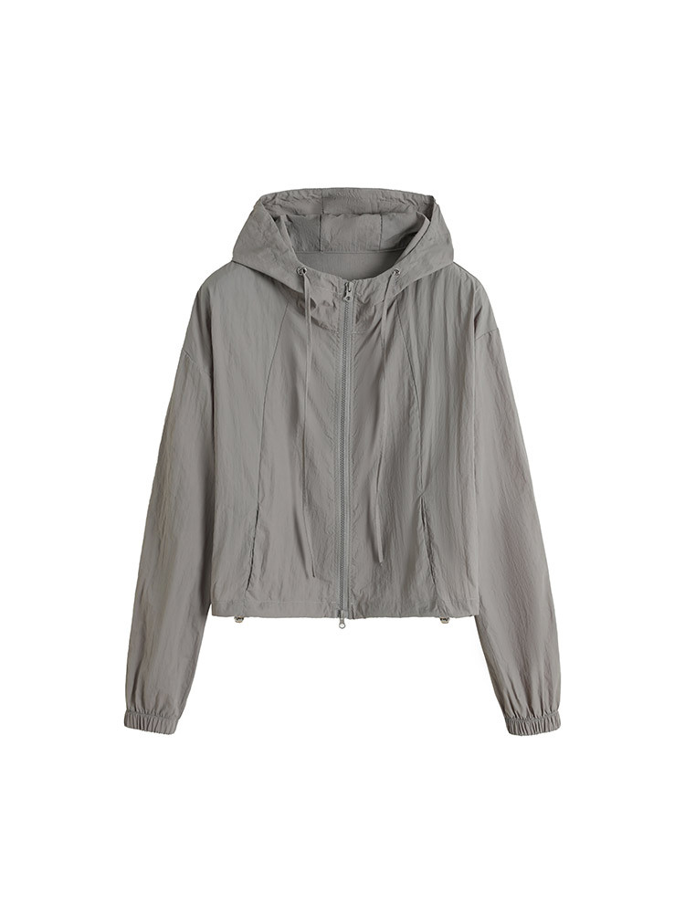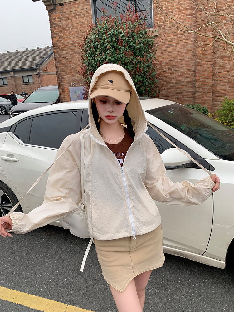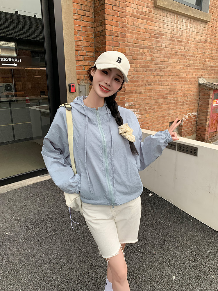 防晒连帽开衫女短外套春夏百搭宽松上衣轻薄拉链长袖冲锋衣