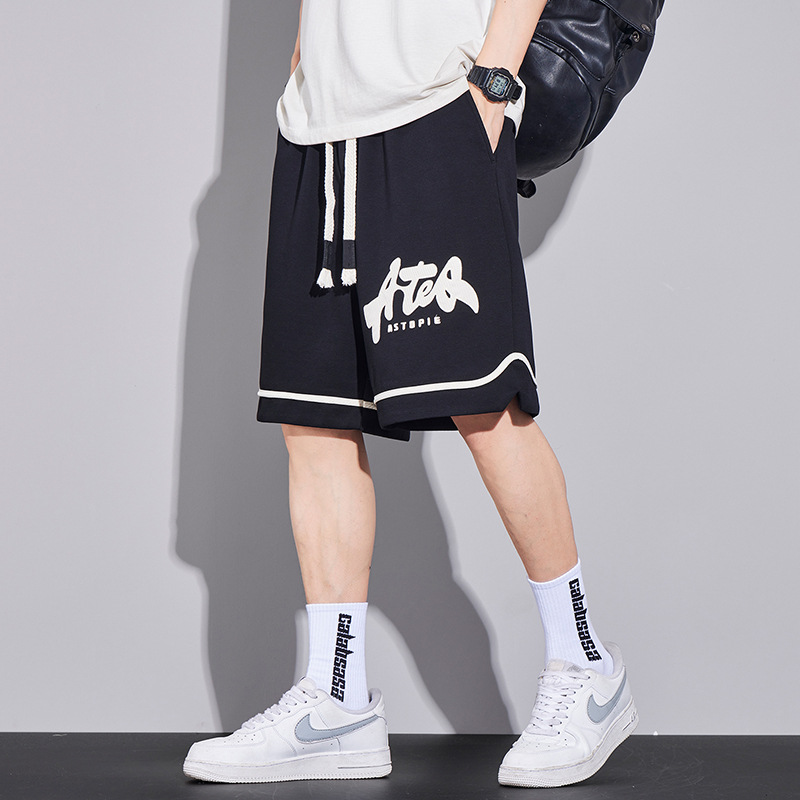 短裤男新款夏季美式潮流字母印花宽松中裤男生运动休闲五分裤
