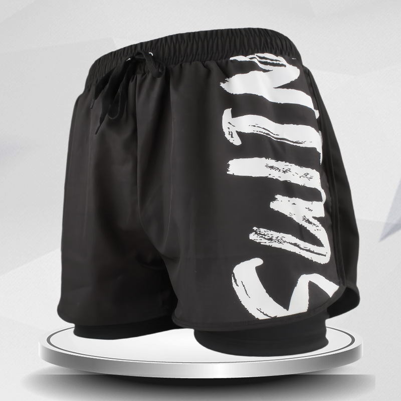 双层泳裤男士新款防尴尬速干游泳裤宽松快干温泉沙滩游泳装备
